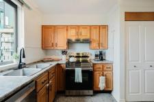 Downtown living at its finest! This TOP FLOOR, sun-filled home offers over 1200 sqft of comfortable living space w/ mountain views. The 2 bed, 2 bath layout features a bright open-concept design ideal for entertaining. The rooms are large & spacious. Enjoy the large enclosed balcony with heaters, perfect for a home office, fitness area, or storage. Recent updates include new appliances, premium laminate flooring, heated bathroom floors, and a renovated bathtub, shower, and tile surround. Additional highlights include in-suite laundry, a private storage room attached to the unit, underground parking conveniently located near the entrance & vehicle wash station in garage. EV charging infrastructure is currently underway. Two furry friends welcome. Centrally located with gyms, shops, restaurants, and amenities just steps away. 98 Walkscore with access to public transportation. This is the perfect home for investors, down-sizers, students or young family. *Ask about property tax credit.