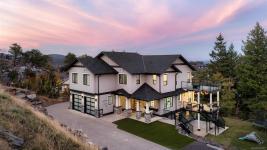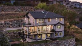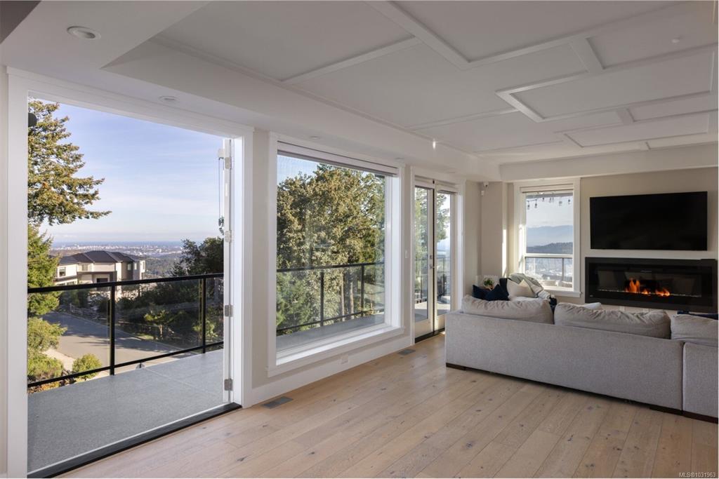 Welcome to 1414 Grand Forest Close, a custom-built family residence perched on Bear Mountain, capturing sweeping ocean, city, and mountain views from every principal room. The main level features a chef-inspired kitchen with a quartz sit-up island, built-in coffee station, and a dedicated dining area anchored by a striking custom wine wall. The living room flows seamlessly to a wraparound patio, perfect for entertaining and taking in the views. The primary suite offers a luxurious 5-piece ensuite, walk-in closet, cozy fireplace, and a private deck. Additional bedrooms feature custom built-in closets and share a well-appointed 4-piece Jack-and-Jill bath. The lower level is designed for lifestyle, complete with a spacious media room, sleek bar with beverage fridge, guest bedroom, and a versatile office. Walk out to a spacious and fenced backyard with a covered patio. Complete with a private 2 BEDROOM LEGAL suite above the garage with its own private entry and additional parking.