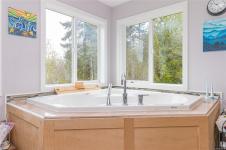 This spacious 4 bed, 3 bath, open plan home on a level 5 acres welcomes you with a light-filled great room featuring vaulted ceilings & a wall of windows that frame the beautiful forest views. The gourmet Kitchen is a lovely, bright & functional space equipped with a farmhouse sink, warm wood cabinetry, expansive quartz countertops, & a large island. Combining an Insulated Concrete Form foundation with the dual-heating strategy of a high-efficiency heat pump & a woodstove creates a very energy efficient home. The primary bedroom boasts a private deck, huge walk in closet, & a spa-like ensuite with deep jetted soaker tub. The 1426sqft unfinished walk out basement & a loft above the garage provided options for additional living spaces, in-law suite, or easy access storage. This is more than just a home; it’s a canvas to create your island dreams; whether it be expansive gardens, space to grow a family, or just total privacy while being a short drive to amenities. View today!