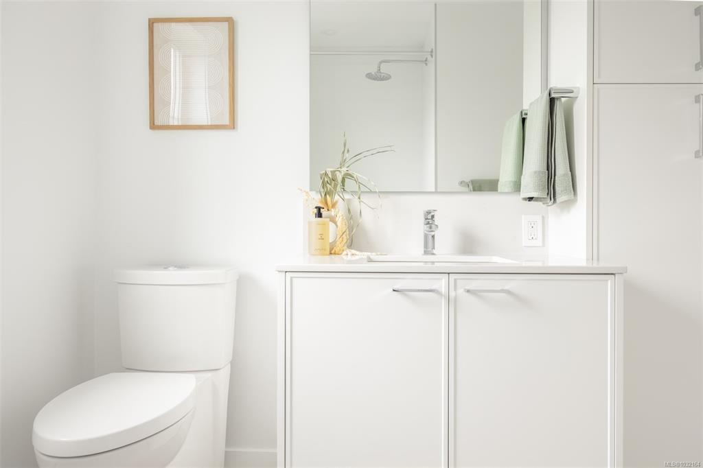 Welcome to Greyson, a brand-new community of naturally inspired family-sized townhomes by award-winning Abstract Developments. Just completed and one of the only townhomes in Saanich offering a true EV-ready, side-by-side 2-car enclosed garage, this rare 4 Bed, 3 Bath home delivers both space and long-term livability. Offering 1,545 sq ft, the home features 9’ ceilings, generous windows, and a bright main living area with a well-appointed kitchen showcasing quartz countertops, shaker-style cabinetry, stainless-steel appliances, full-height pantry & built-in desk. Enjoy two private outdoor spaces including patio framed by lush landscaping and classic white picket fencing. Located minutes from the amenity-rich Uptown Shopping District and the Galloping Goose trail, Greyson is perfectly positioned between the city’s outer limits and the downtown core for seamless connectivity within Victoria and beyond. Optional upgrade for AC available and 10-year home warranty. Price + GST.