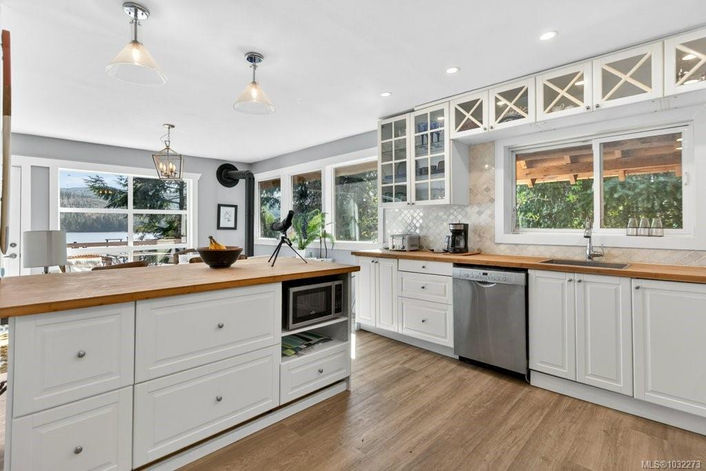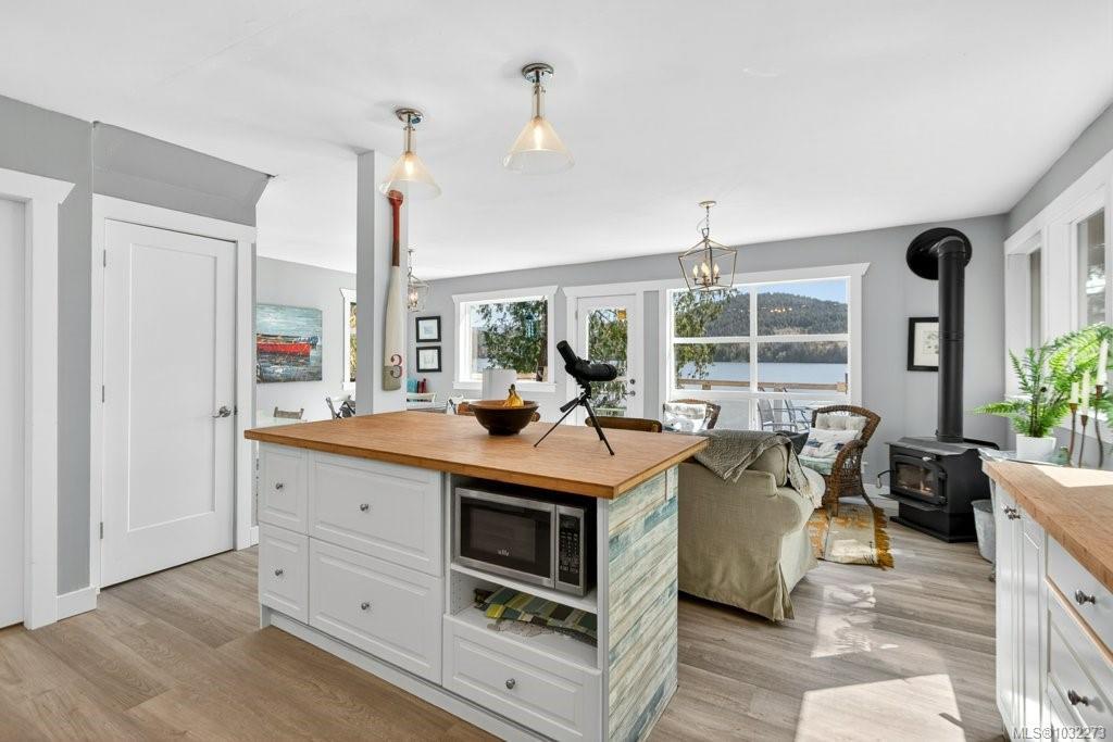 Oceanfront beach house with room for family, guests, hobbies and more! This multi-level residence, with many renovations and updates in the last seven years, offers 3 bedrooms and 3 bathrooms, a welcoming living space and gourmet kitchen. An oceanside deck and large oceanside windows enhance the coastal ambience. The gourmet kitchen has been tastefully designed with full-height cabinets, butcher block countertops, stainless steel appliances and attractive tiled wall behind the sink and oven. Upstairs is an amazing primary suite with a private seating area in front of picture windows looking out over the ocean, a sleeping area, a large ensuite with walk-in shower and double vanities. The seller is offering the home completely furnished. The small oceanfront lot, like many others in Winter Harbour, sits on the edge of the boardwalk that runs along the harbour to the government dock. Winter Harbour, on NW Vancouver Island, has a protected harbour and gravel road access.