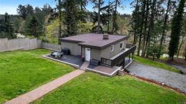 Fully rebuilt move in ready family home located on a 1.122 acre parcel with potential for 999 sf studio home and an addition of up to 3400sf (R3 Zoning). Pride of ownership is evident in this well maintained property. Great location, close to Deep Cove, Deep Cove Market, Horth Hill Park, & can walk to beach. A very private property that is nicely treed. Level entry with kitchen living/dining room and 2 bedrooms on main, 1 bathroom with large free standing soaker tub with heated bathroom floors. Downstairs has an additional bedroom with attached bathroom with glass corner shower and a spacious rec-room. Large walk around deck on three sides of main floor to get south and west sun exposure, which provided covered deck space on two sides of lower level. All new 2 pane windows throughout. Heat pump with back up high efficiency oil furnace with lots of storage. See attachment with detailed list of improvements. Buyer to investigate development potential.