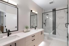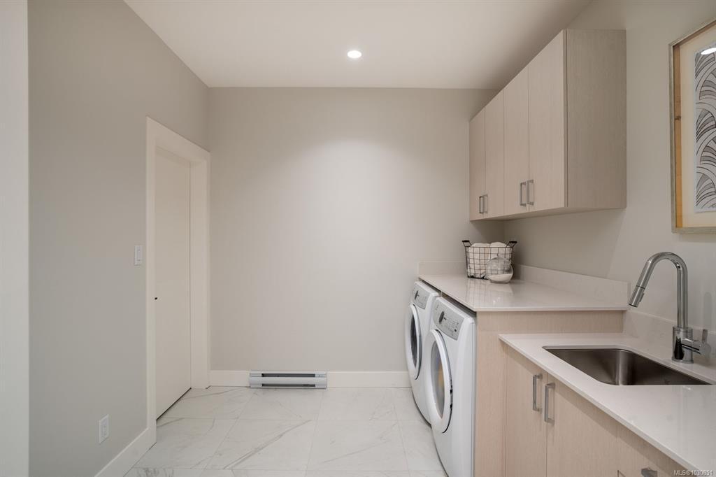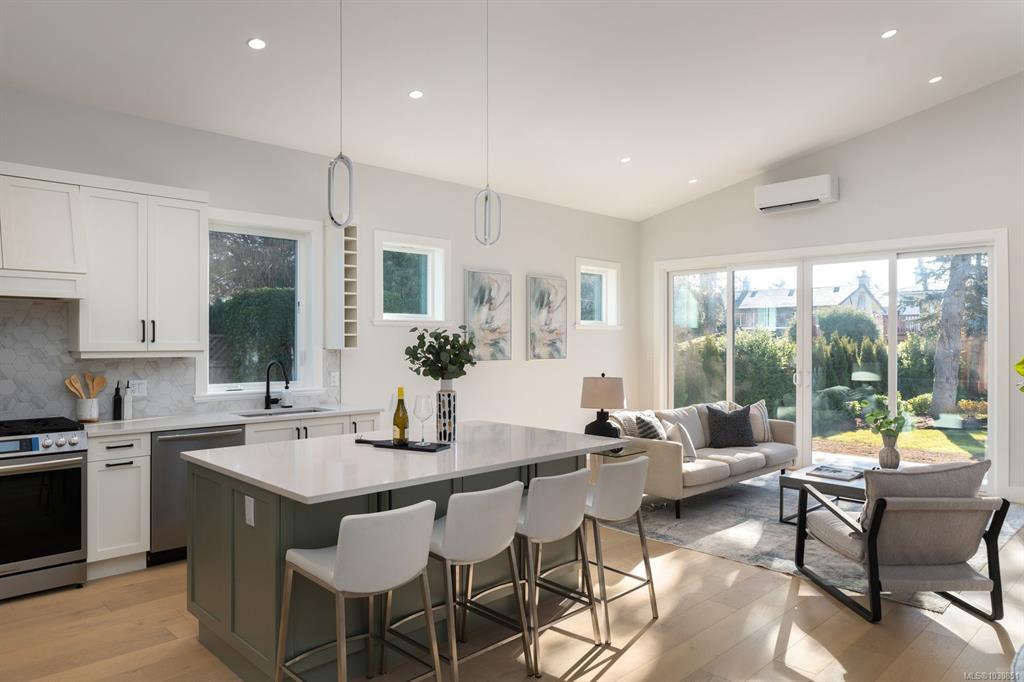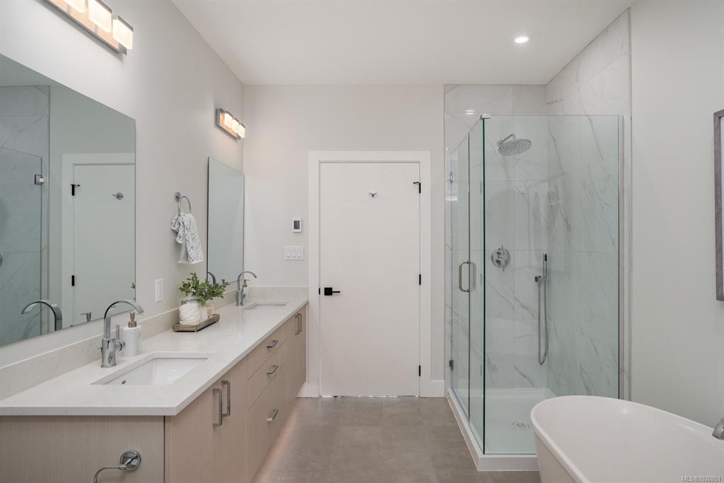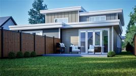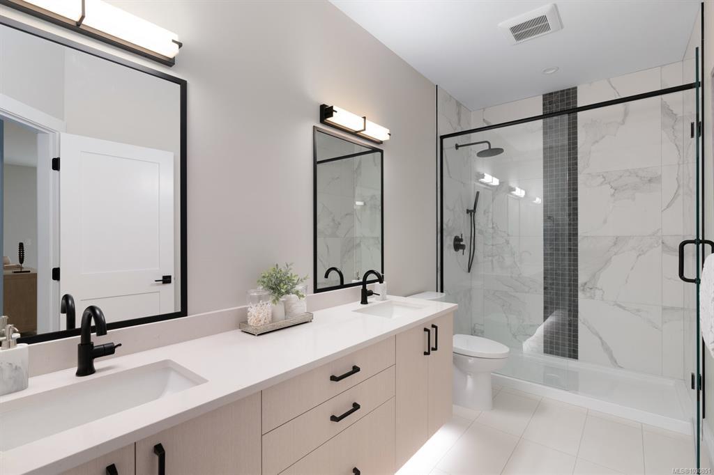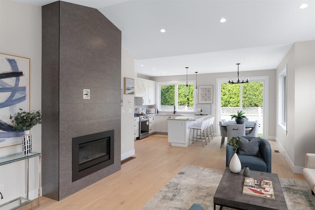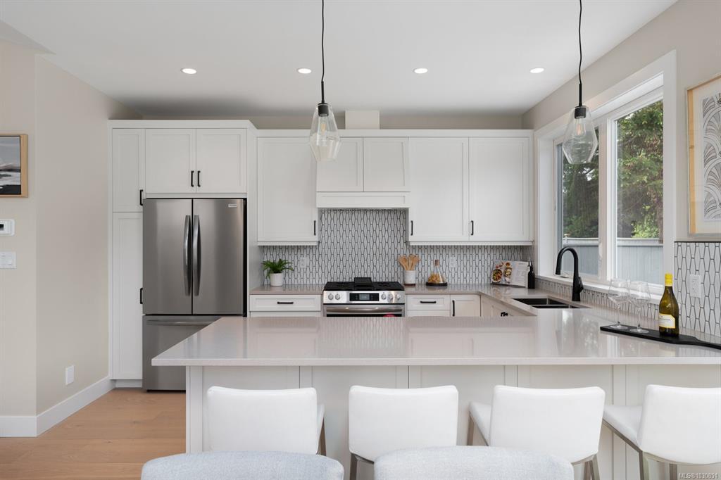 Perfectly positioned on one of Sidney’s most desirable streets, this brand-new half duplex built by Garrett Wakefield Construction offers refined main-level living with timeless design. Offering 1,876 sq ft of finished space, this 3-bedroom, 2.5-bathroom home features 9 ft ceilings, large windows, and a bright open-concept layout. The custom kitchen showcases quartz countertops, stainless steel appliances, soft-close cabinetry, and a generous pantry. The main-level primary suite includes a walk-in closet and spa-inspired ensuite. Upstairs offers two additional bedrooms and a flexible landing ideal for an office, media room or reading space. Enjoy a private patio, fully fenced back yard, gas BBQ hookup, and low-maintenance landscaping. Additional features include a single-car garage, with EV charger rough-in and a heat pump with A/C for year-round comfort. Located minutes to beaches, shops, restaurants, YYJ and BC Ferries this home offers comfort, style, and convenience.