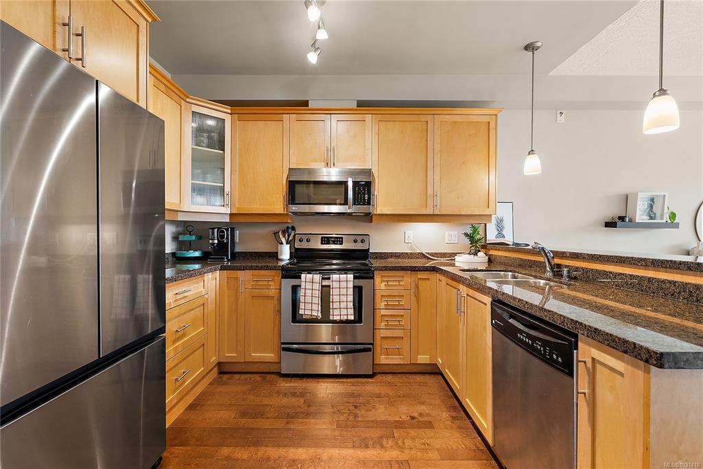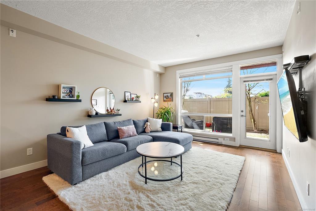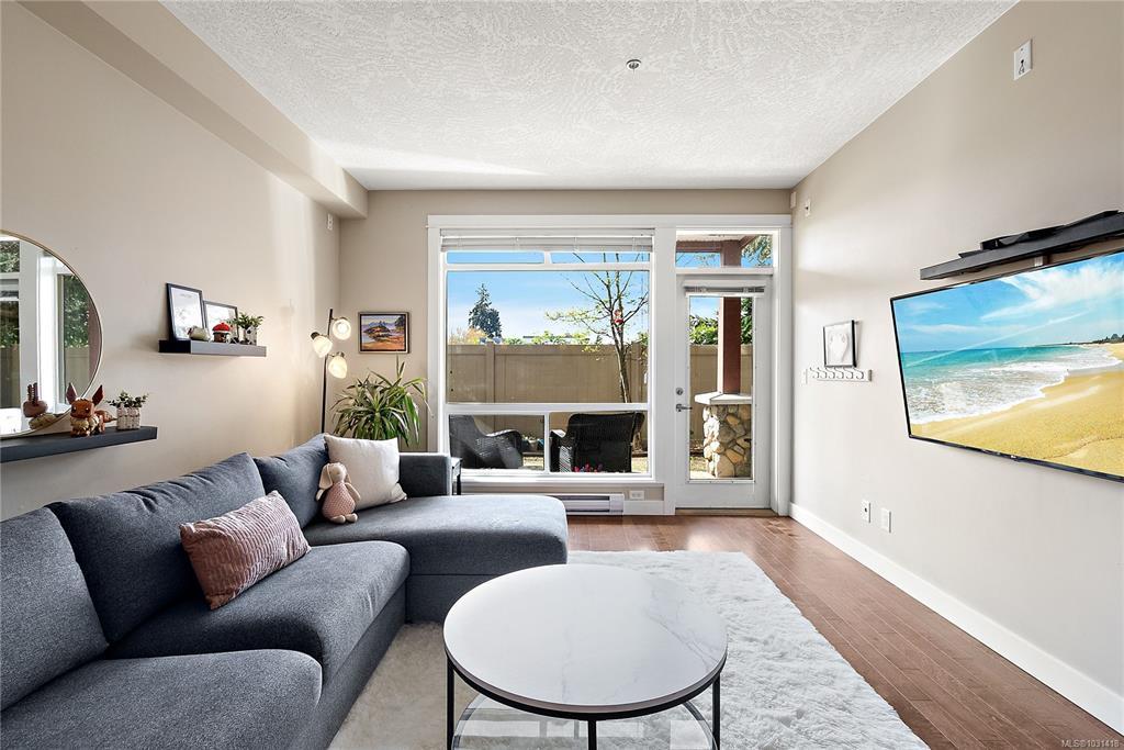 Welcome to the Stonewood, one of Langford’s most sought-after concrete & steel condominiums. This ground-floor 2 bed 2 bath suite offers a rare combination of condo convenience & outdoor living. Step directly from your living room onto a large private patio that backs onto open green space of the adjacent school playground, offering a tranquil, park-like outlook w/ no rear neighbours. Inside, the open-concept layout features 9’ ceilings, engineered hardwood flooring & well-appointed kitchen w/ granite counters & stainless appliances (new fridge!). The primary bedroom is generously sized w/ ensuite, while the second bed & 4 pce bath make this ideal for families. Enjoy the convenience of in-suite laundry, secure underground parking, separate storage, bike storage & a well-equipped gym right across the hall. Pet-friendly & ideally located walking distance to shops, restaurants, transit & all downtown Langford amenities, yet tucked on the quiet end of Jacklin Rd away from traffic noise.