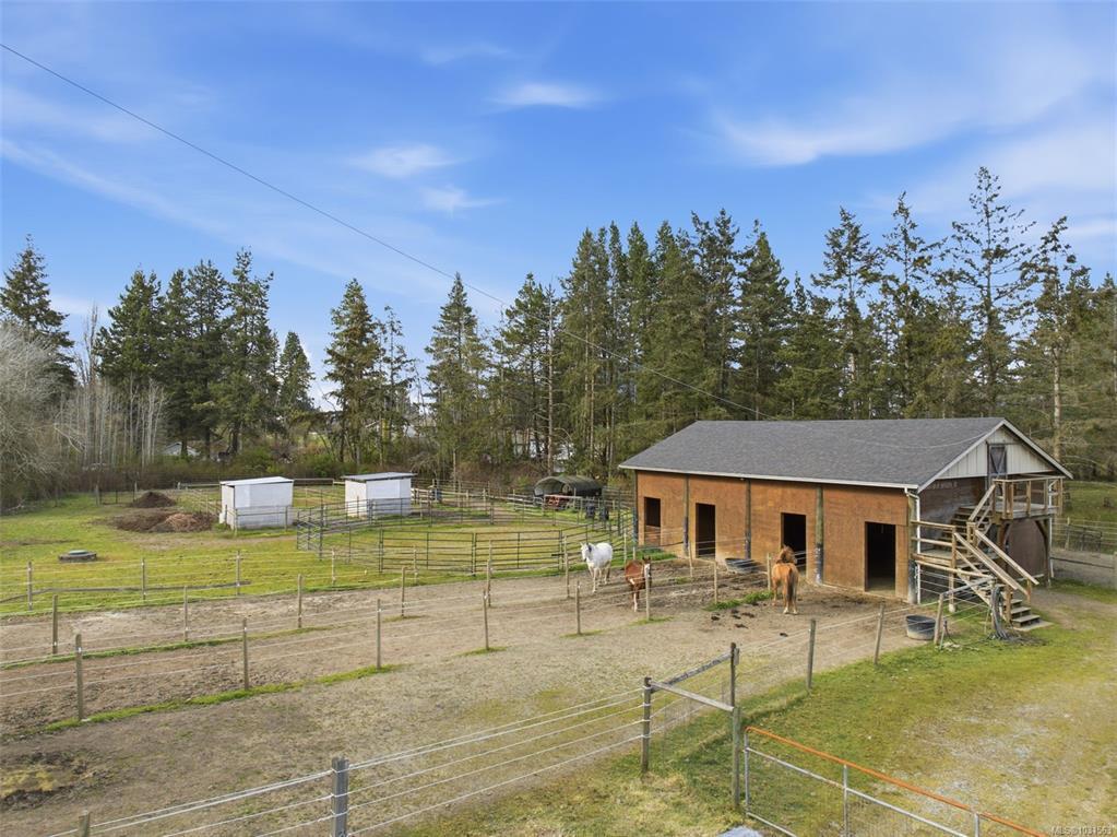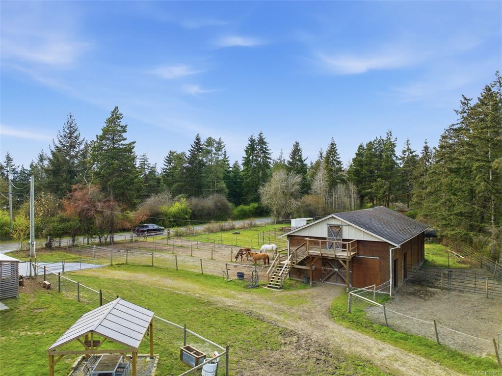 Rare 6-acre equestrian property in picturesque Cowichan Bay offering privacy, functionality, and rural lifestyle appeal. Located within the Agricultural Land Reserve and zoned A-1, this property offers excellent potential for equestrian, hobby farm, or agricultural use. The updated 3 bed, 3 bath farmhouse blends character with modern improvements, including soft-close cabinetry, stainless appliances, updated windows, WETT-certified wood stove, 200amp service with generator panel, maple flooring, and insulated crawlspace storage. Bright main level with open kitchen, spacious living area, fir flooring and laundry/mudroom. Upstairs, the primary suite features a walk-in closet and ensuite with separate tub and shower. Fully fenced and cross-fenced acreage includes seasonal pond and creek, garden beds, chicken coop, fruit trees, and outbuildings. Equestrian amenities include a 6 stall barn, tack and feed rooms, sheltered paddocks, riding ring, and pasture space. Rural living near amenities.