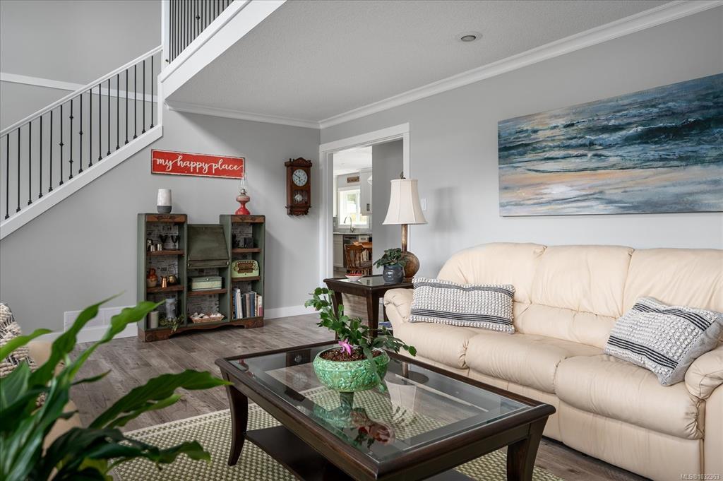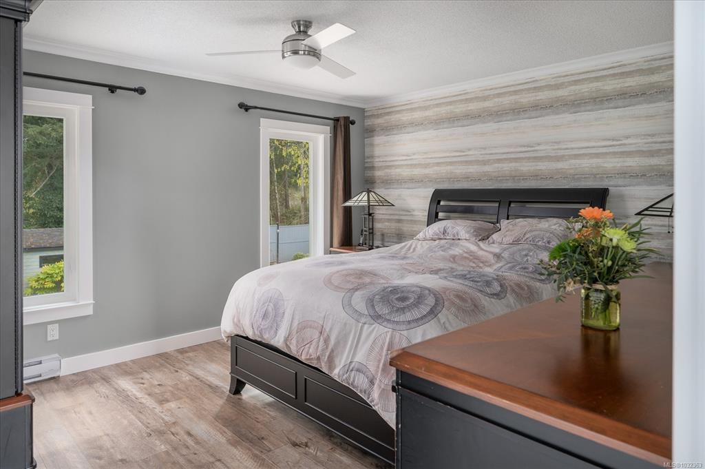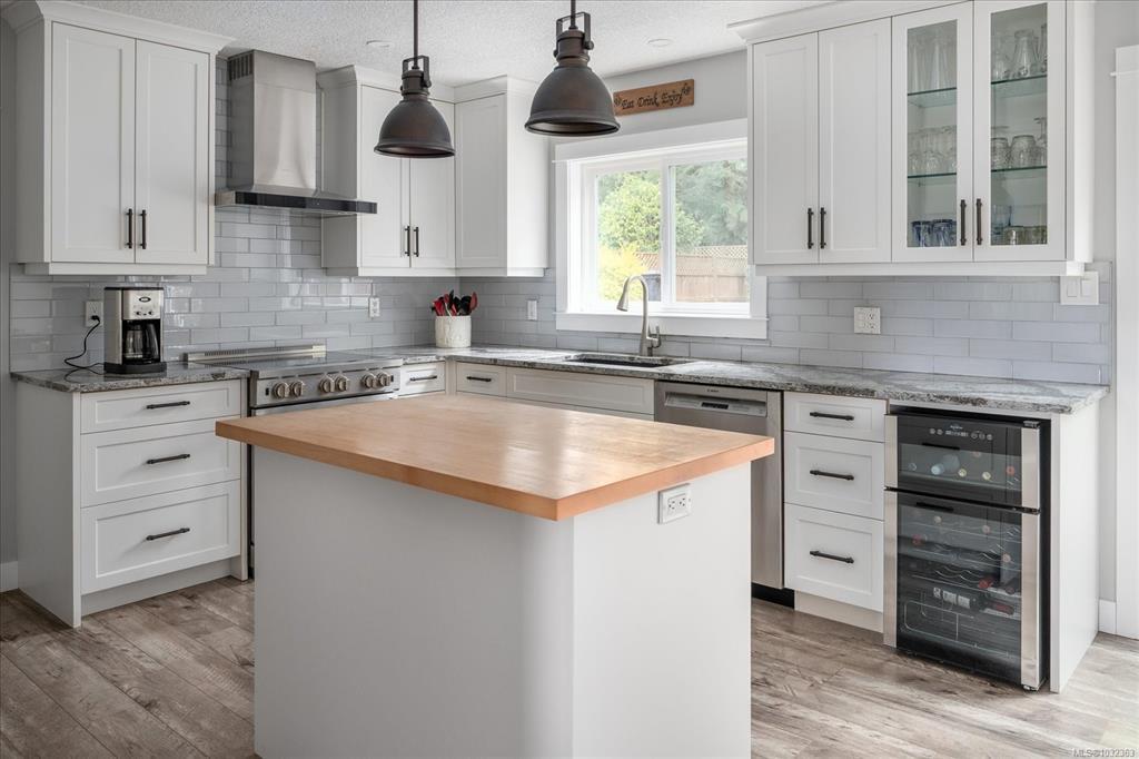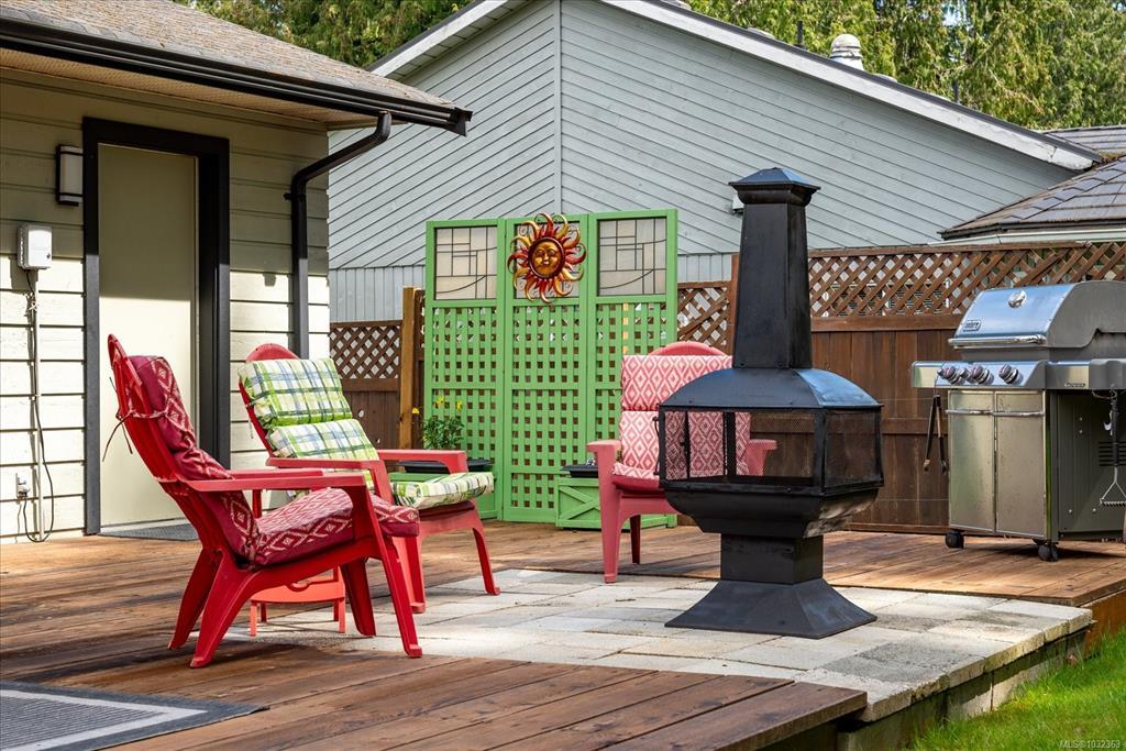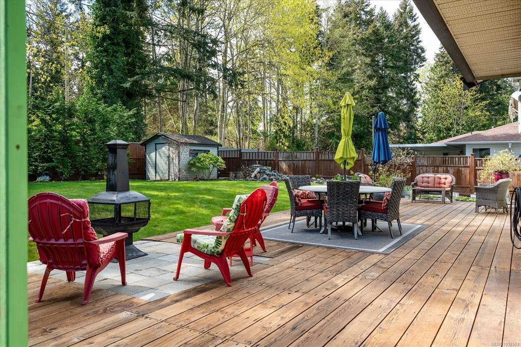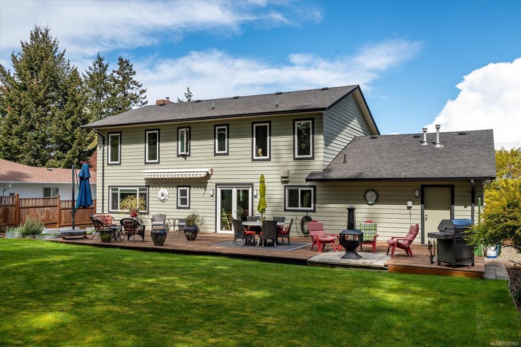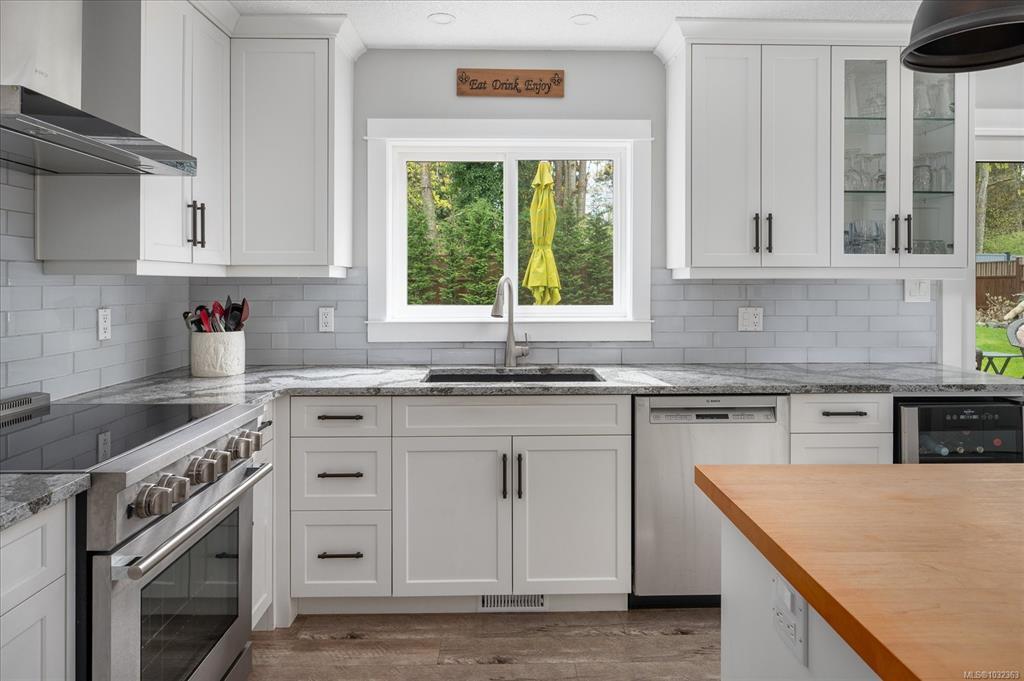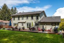 Eaglecrest home. Move in ready. Spacious 2314 sq. ft, 4-bedroom, 3 full bath, 2 storey home on crawl. This home has been lovingly updated throughout. Updates include a bright white kitchen w/SS appliances, induction stove, bar fridge, pantry, island, tile backsplash, quartz counters, pot lamps & lots of cupboards, 3 updated bathrms, new laminate & tile flooring, light fixtures, roof, siding, gutters, vinyl windows in back, extra upgraded insulation & cedar deck. Features a bright living room w/lots of windows, vaulted ceiling & gas FP, formal dining rm, eating nk & double garage. The French door off the eating area takes you outside to a south facing, 50’ x 17’ deck which overlooks the large 75’x124’ private, fenced back yard w/lovely pond & fountain water feature, raised vegetable beds, awning & storage shed. On a quiet street within easy walking distance to a sandy, swimming beach, Eaglecrest golf course & close to recreation, transit & marina. A home you would be proud to own.