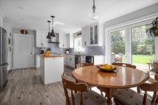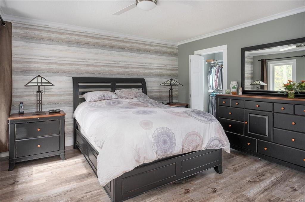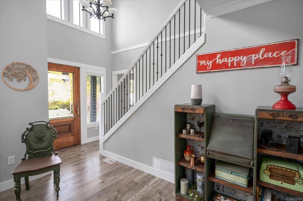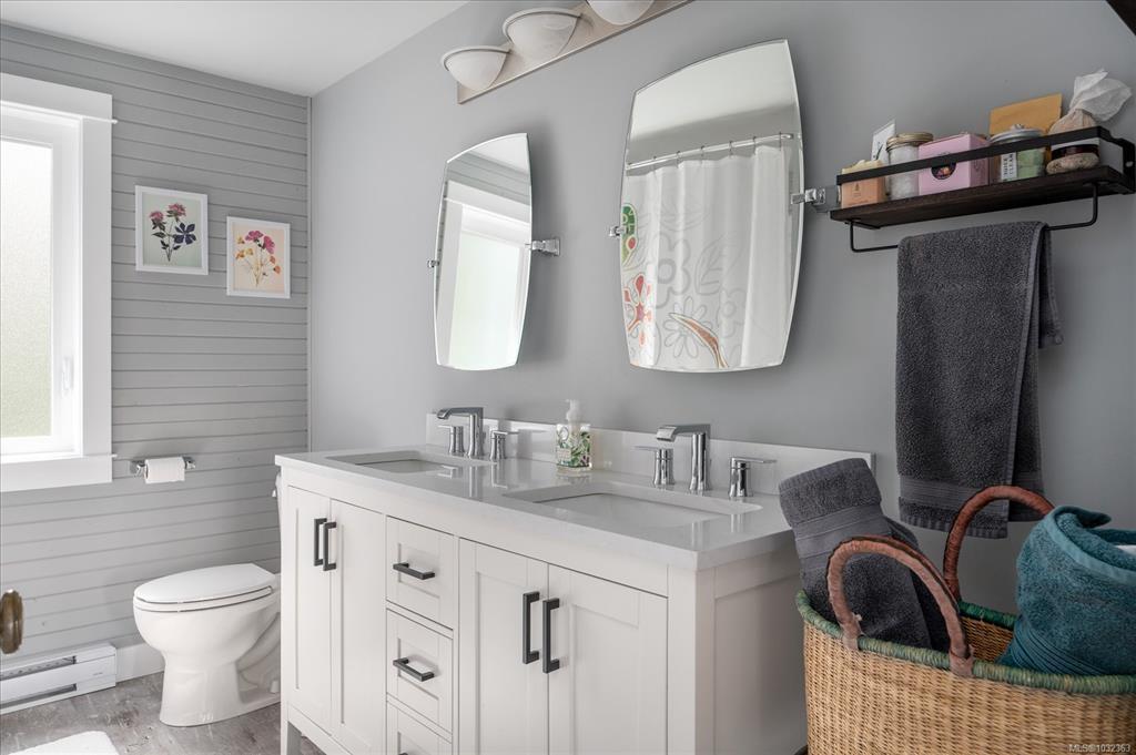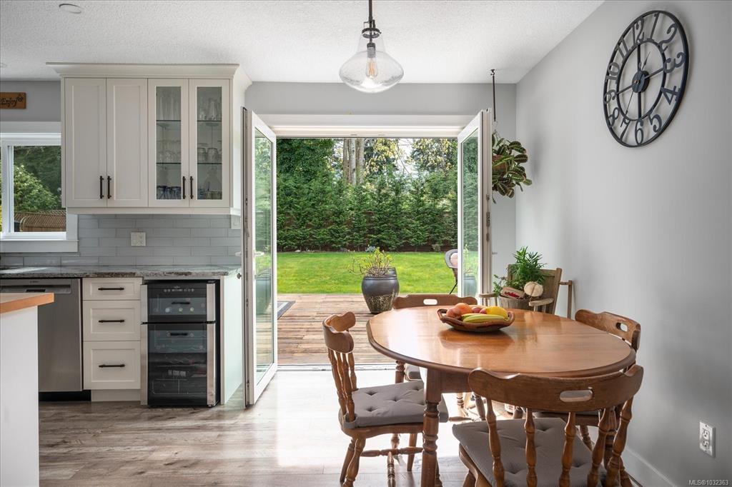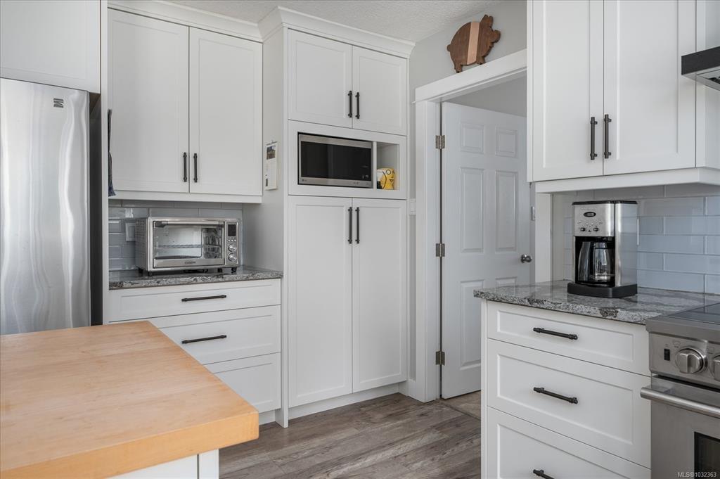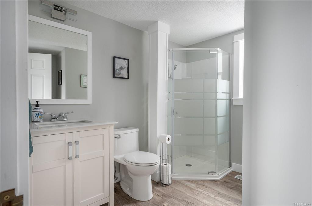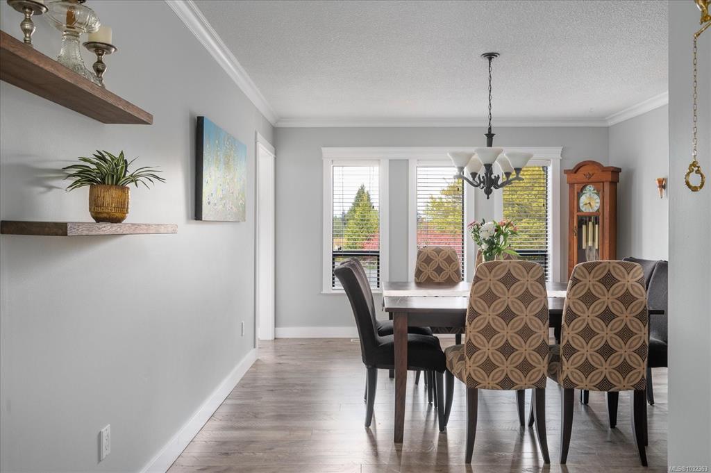 Eaglecrest home. Move in ready. Spacious 2314 sq. ft, 4-bedroom, 3 full bath, 2 storey home on crawl. This home has been lovingly updated throughout. Updates include a bright white kitchen w/SS appliances, induction stove, bar fridge, pantry, island, tile backsplash, quartz counters, pot lamps & lots of cupboards, 3 updated bathrms, new laminate & tile flooring, light fixtures, roof, siding, gutters, vinyl windows in back, extra upgraded insulation & cedar deck. Features a bright living room w/lots of windows, vaulted ceiling & gas FP, formal dining rm, eating nk & double garage. The French door off the eating area takes you outside to a south facing, 50’ x 17’ deck which overlooks the large 75’x124’ private, fenced back yard w/lovely pond & fountain water feature, raised vegetable beds, awning & storage shed. On a quiet street within easy walking distance to a sandy, swimming beach, Eaglecrest golf course & close to recreation, transit & marina. A home you would be proud to own.