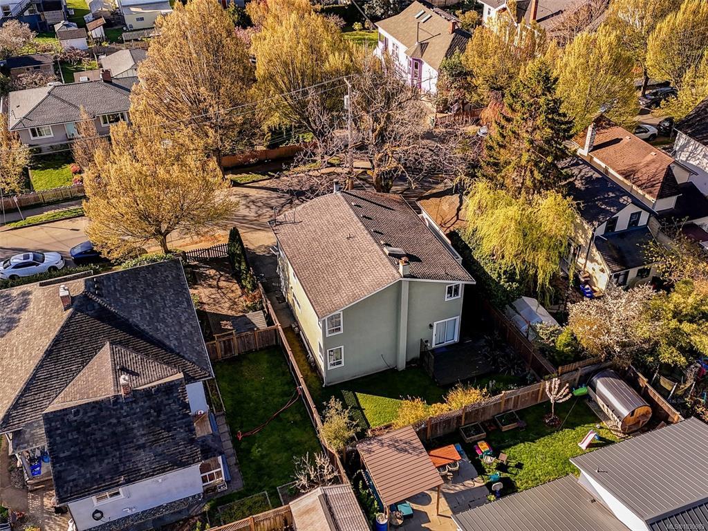 Set on one of Vic West's most loved tree lined streets, this well maintained 4 bedroom home offers flexibility, comfort & an unbeatable community setting. Pine Street is known for its welcoming neighbourhood feel & memorable Halloween block party, all just a half block to the waterfront park. The bright main level features vaulted ceilings, a feature fireplace, an open living concept and a large dining area with space for big family dinners. The kitchen opens to a west facing deck, perfect for BBQs and evening sun. Upstairs offers 2 bedrooms, while the lower level includes a spacious 2 bedroom in-law suite with second kitchen, separate entrance and living room with wood stove. Also on the lower level is space for a workshop or bikes and motorcycles, and a crawl space for extra storage. The fenced yard and easy care back deck complete this appealing home close to downtown, Banfield Park, the Gorge & the Selkirk Trestle. Great for buyers seeking a comfortable home with added income.