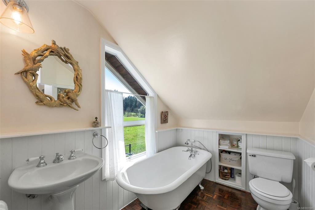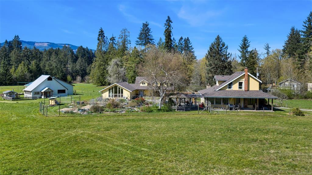 A magical, private & versatile 26.8 acre estate in the heart of historic Cowichan Station, walking distance to The Hub & winery. This picturesque property features high bank frontage on the Koksilah River with access to a natural swimming hole, 3 ponds plus Patrolas Creek flowing through. Mature forests, established walking trails, open hay fields, & a former runway with a 2,688 SF hangar provide exceptional possibilities. The circa 1900 home retains some period character including fir floors & high ceilings & enjoys a large, irrigated veggie garden, with deer/elk fencing. Other features: a detached carriage house above a studio/garage & a large, bright, open multipurpose space attached to it is perfect for gatherings or events & offers a vaulted ceiling & kitchen. The grounds include mature gardens, sunny exposure, fruit trees plus there are a long list of recent upgrades & infrastructure improvements. This property must be viewed to truly appreciate its unique character and beauty.