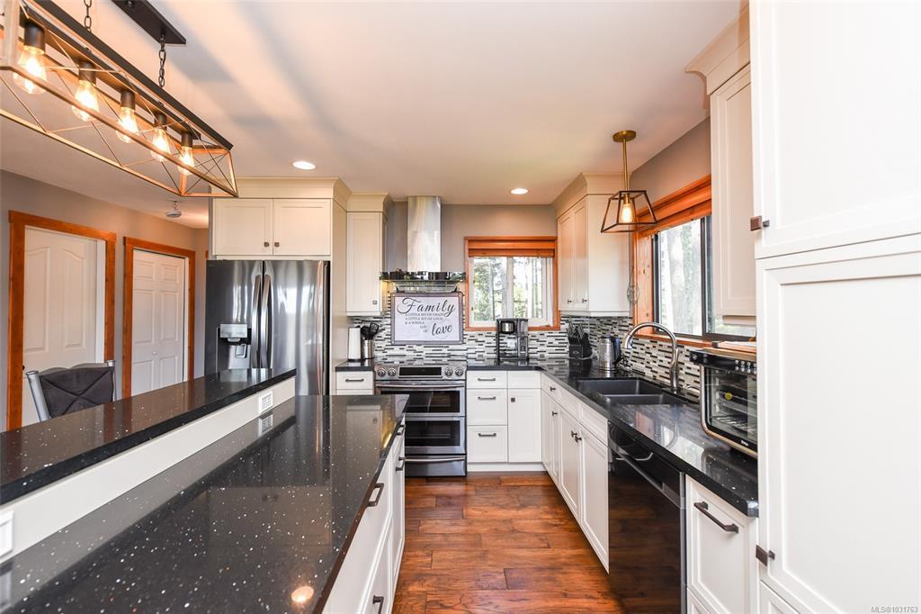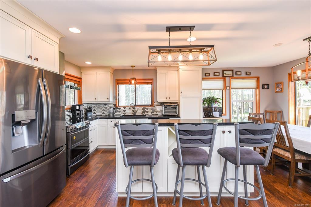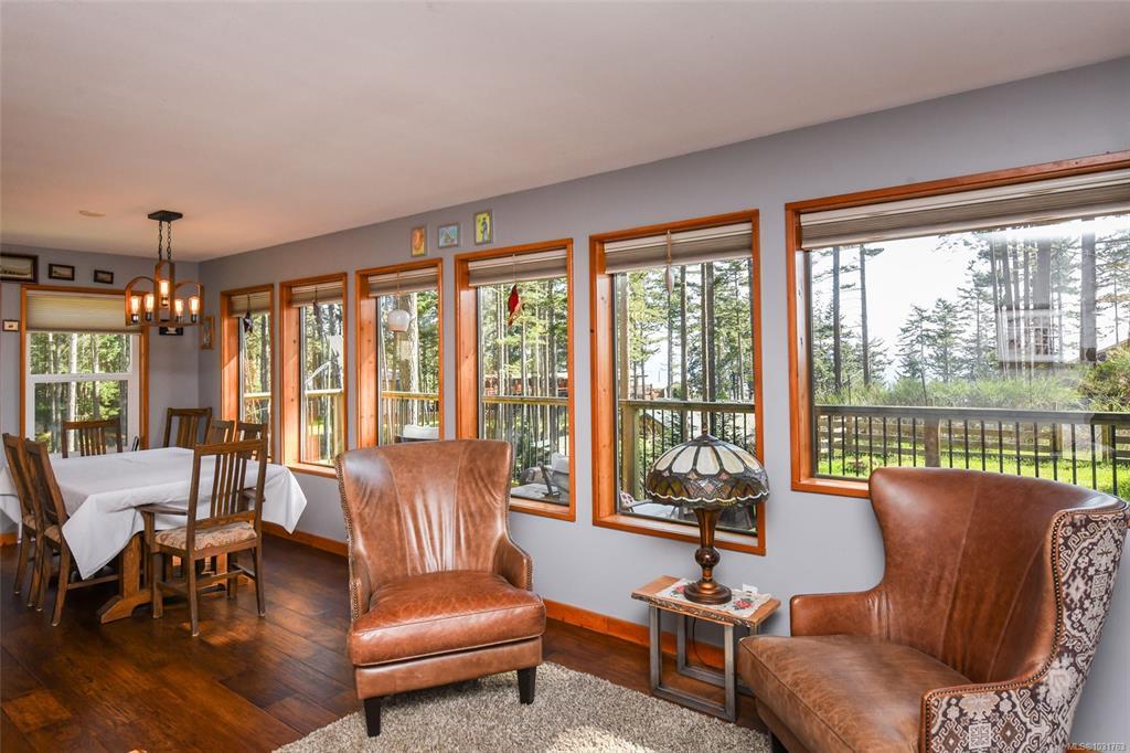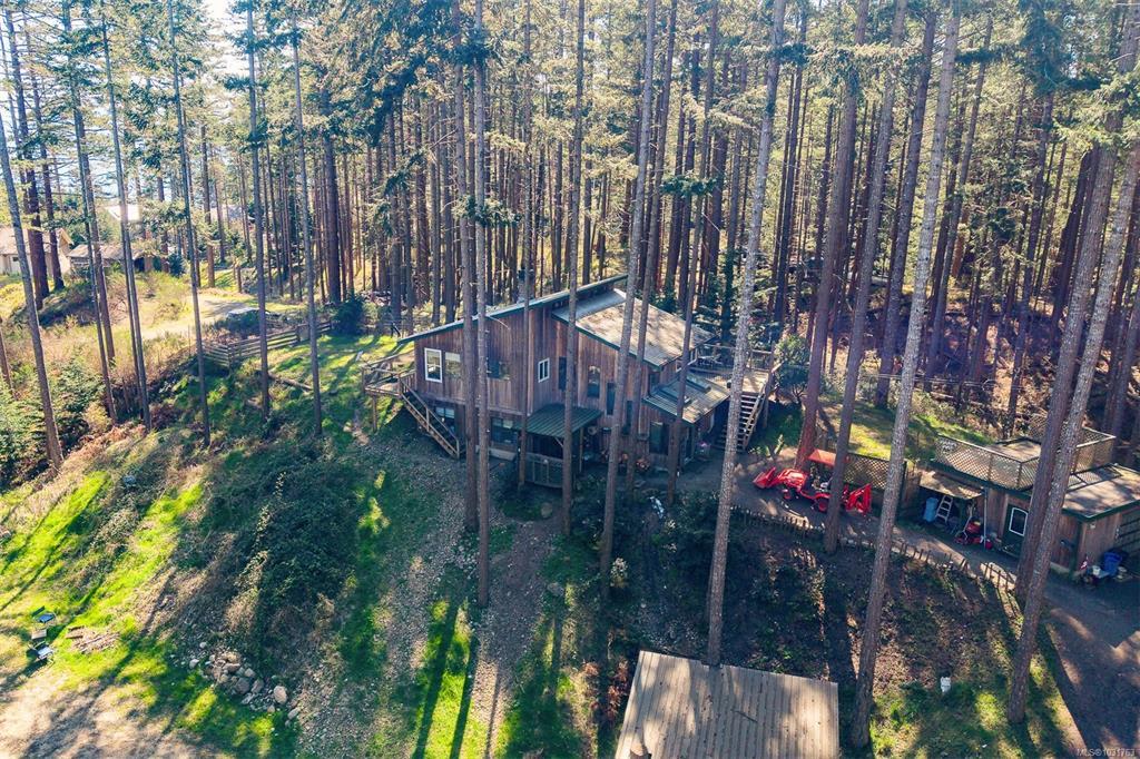Welcome home to your 3.57-acre oceanview property in the desirable Point Holmes neighbourhood in Comox. A long, private driveway leads you thru mature trees to this peaceful retreat, all just minutes from the airport, beaches, CFB Comox, and many other amenities. Featuring two homes positioned at opposite ends of the property, this is an ideal opportunity for multigenerational living, or income potential, with possibility for BnB, home occupation, and domestic agriculture. The main home boasts fir hardwood flooring, custom kitchen cabinetry, stunning 16’ vaulted ceilings, a newer roof and HWT, and woodstove that adds warmth and character to the bright, open living space. The second home (built in 2003) has extensive upstairs renos, and a durable metal roof. Multiple decks on both homes provide the perfect place to take in the fresh ocean breeze. Lots of space for gardening, a detached workshop, garage, and shed complete this property with room for all of your equipment and toys.