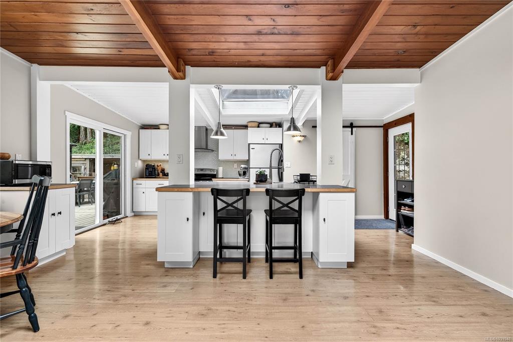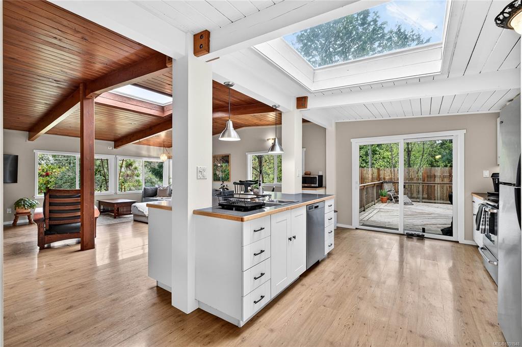 Book an appointment to view this well appointed 3-bedroom, 1,200+ square foot home set on a natural and treed 1.28-acre lot, across the road from St Mary Lake. This functional open plan home maximizes space, offering vaulted ceilings, pyramid skylights, a fireplace with an efficient insert, with a main living area that opens up onto a spacious deck - extending the living space outdoors and offering a great spot for entertaining and quiet leisure. The north-end location provides easy access to town, schools, ferries and the close proximity to the lake allows you to leave the car at home and stroll to the beach, where you can enjoy swimming, trout and bass fishing and boating. Multiple storage and wood sheds provide practical storage and the piped water servicing the home offers peace of mind in the dry months. A sweet package at a reasonable price point.