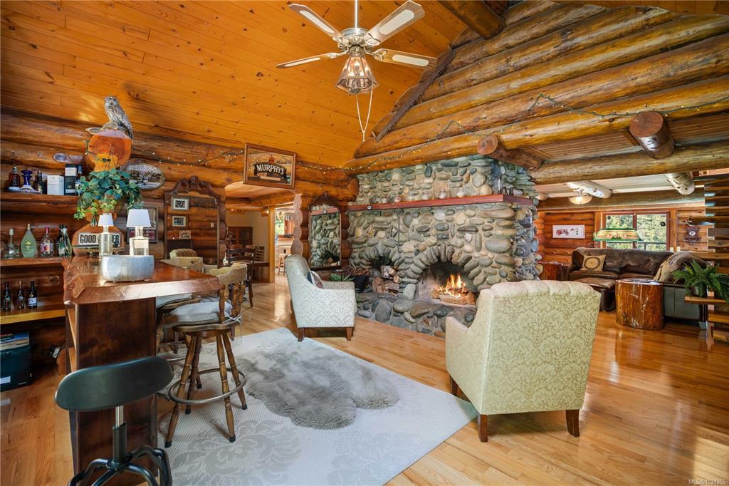 *OPEN HOUSE 1-3PM SAT APRIL 18* Escape to this self-sufficient west coast sanctuary. A turnkey 4.12-acre country estate bordering the 3,400-acre East Sooke Regional Park. Built on solid bedrock, this 3,362-sqft cedar West Coast log lodge marries rustic charm with modern off-grid capabilities. Inside, discover oak floors, a full-size billiard room, and open log fires framed by striking river-stone chimneys. East-facing tilt-and-turn windows frame sweeping mountain and valley views, with multiple skylights welcoming the sun's rays.