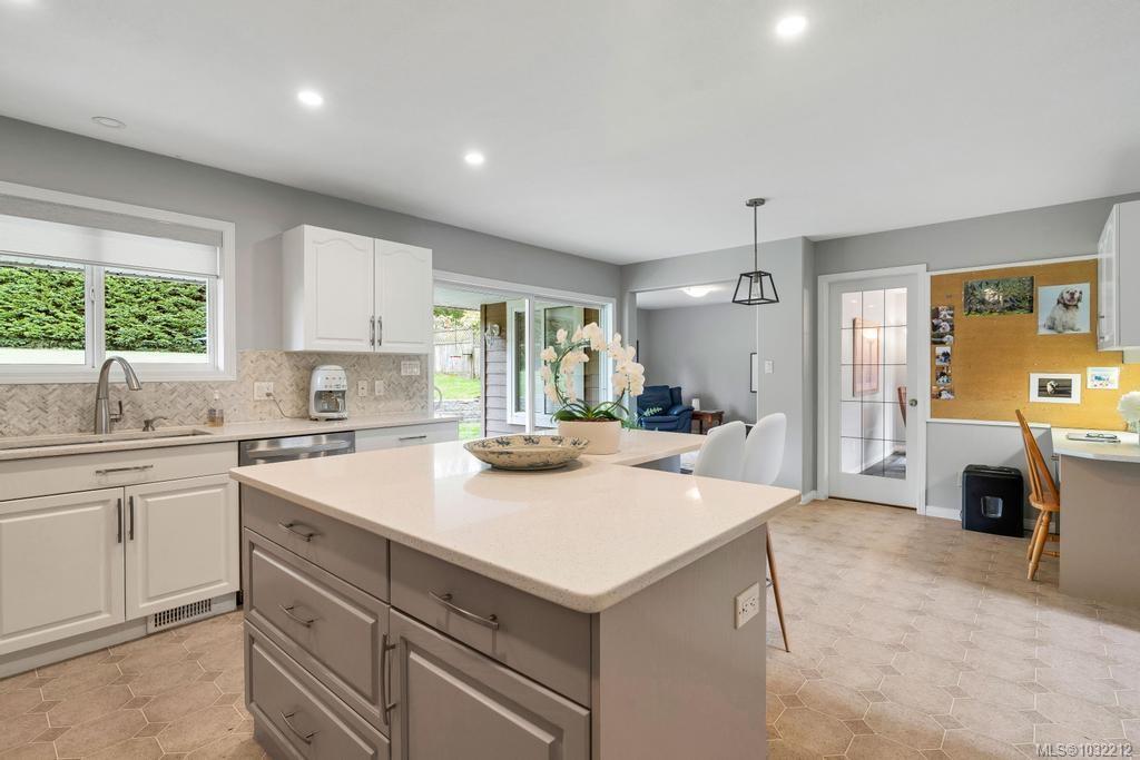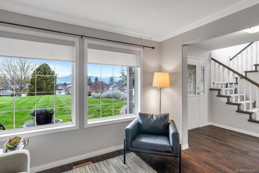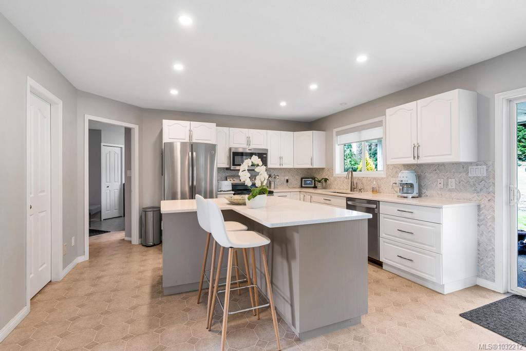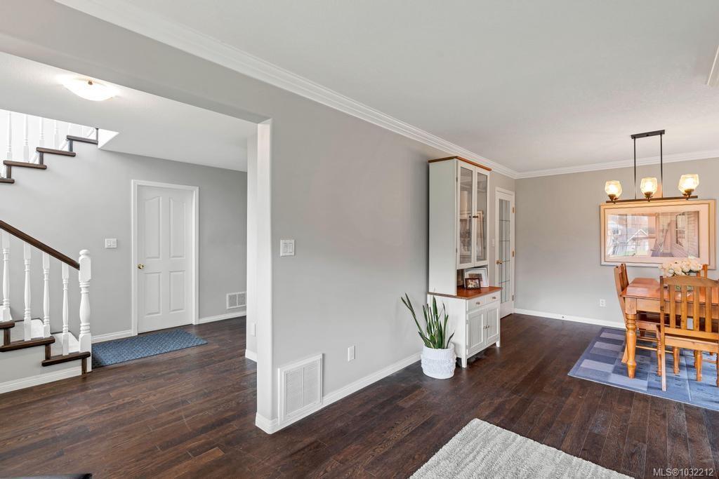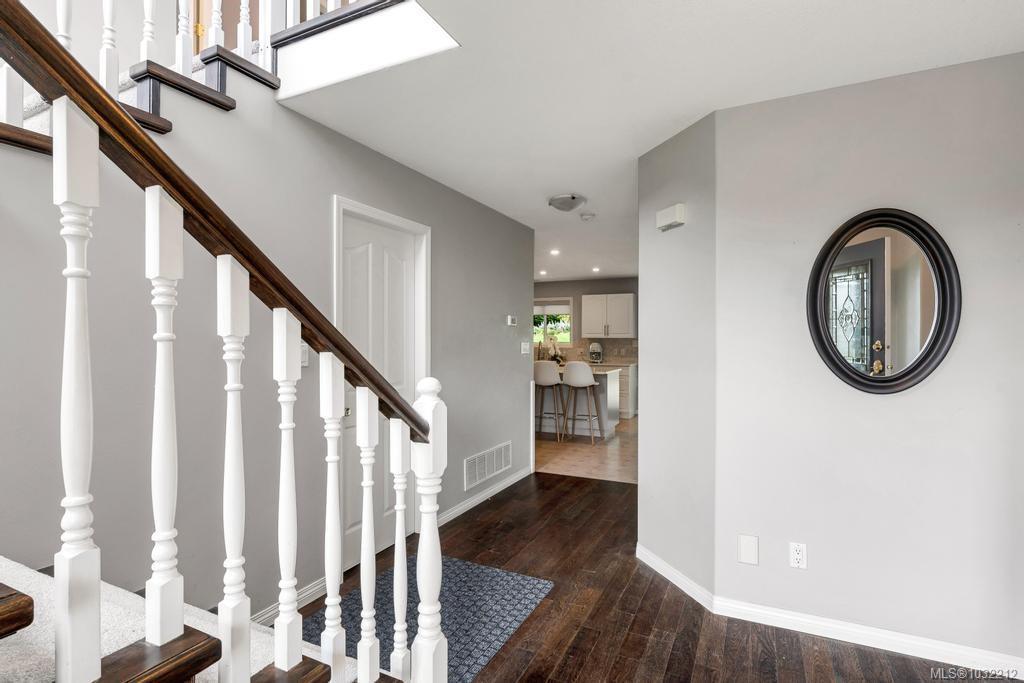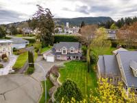 Well cared for 5 bed 3 bath family home on a half-acre tucked away at the end of a quiet cul-de-sac in Stonehouse Estates with sweeping views of Quamichan Lake and the Cowichan Valley. Quality craftsmanship and pride of ownership are very evident with many updates including newer roof, flooring, paint, and roller blinds. The main floor offers a combined living dining room with a double sided gas fireplace, the family room is adjacent to an open concept kitchen w/ stainless appliances, quartz countertops & direct access to the covered patio & private backyard. Easily work from home with an office/bedroom located next to the main entrance. Upstairs are 4 bedrooms including a large primary, ensuite with soaker tub & walk-in-closet. Double garage, work space, EV ready & RV/boat parking. Large back yard with plenty of room to kick a ball or throw a stick for the dog. Close to excellent schools, beaches, marina, trails, mountain biking, vineyards and shopping.