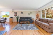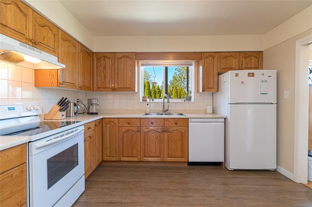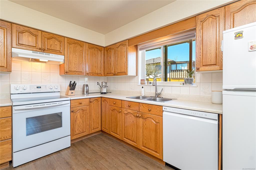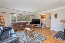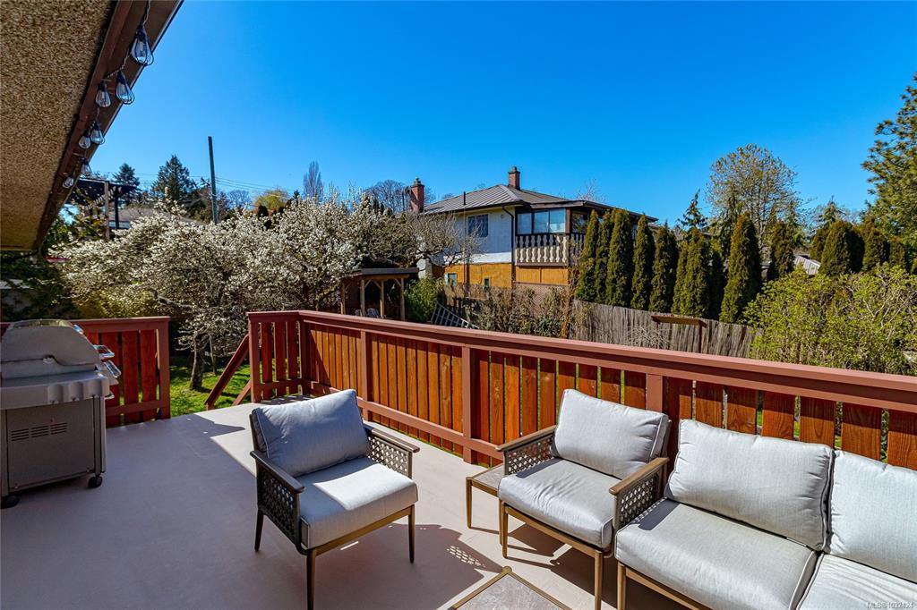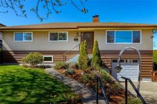 GORGE-OUS FAMILY HOME! Lovingly maintained & thoughtfully updated, this home offers a warm, functional layout perfect for family living. Three beds on the main level, refreshed hardwood floors, new interior paint, updated bathroom & vinyl windows. The kitchen showcases solid oak cabinetry & a cozy breakfast nook, while the dining area flows into the living room and also opens to a large west-facing patio - ideal for summer entertaining. The lower level offers a spacious family room, 3 piece bath, new wood burning stove, laundry area, workshop/storage, & a 4th bedroom (no closet). Excellent potential for a suite, student accommodation, or home office. Additional highlights include a 27x13 garage, 200 amp electrical, & a level 7,000 sq ft lot with planted garden, fruit trees, new gazebo, and greenhouse. Ideally located next to a park and steps to trails, schools, shopping, transit, and the Gorge Waterway - just 10 minutes to town. REFER VIDEO link below.