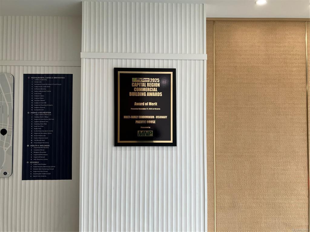 Welcome to this affordable, well-laid-out, bright unit in a walkable location, with low fees, in-suite laundry, parking and storage. Stunning Ocean and mountain views! Everything is close by - transit, groceries, gyms and it’s just minutes to downtown. The layout is open concept with natural light cascading in from the floor to ceiling windows. Large balcony to take in the direct view of the breakwater and watch float planes, cruise ships, ferries etc. (without the noise). Steel and concrete building, triple pane windows, and distance from Esquimalt Rd. makes it really quiet, plus it’s new so low maintenance costs. There’s parking, storage, an amazing amenity area, and there’s no pools and gyms to drive up strata fees. Enjoy high end stainless appliances, quartz counters, soft close cabinets, gas range, full size laundry, self controlled heating and cooling, heated bathroom floors, and hand held plus rain shower. Price + GST. 1st time buyer may get 100% rebate