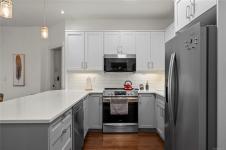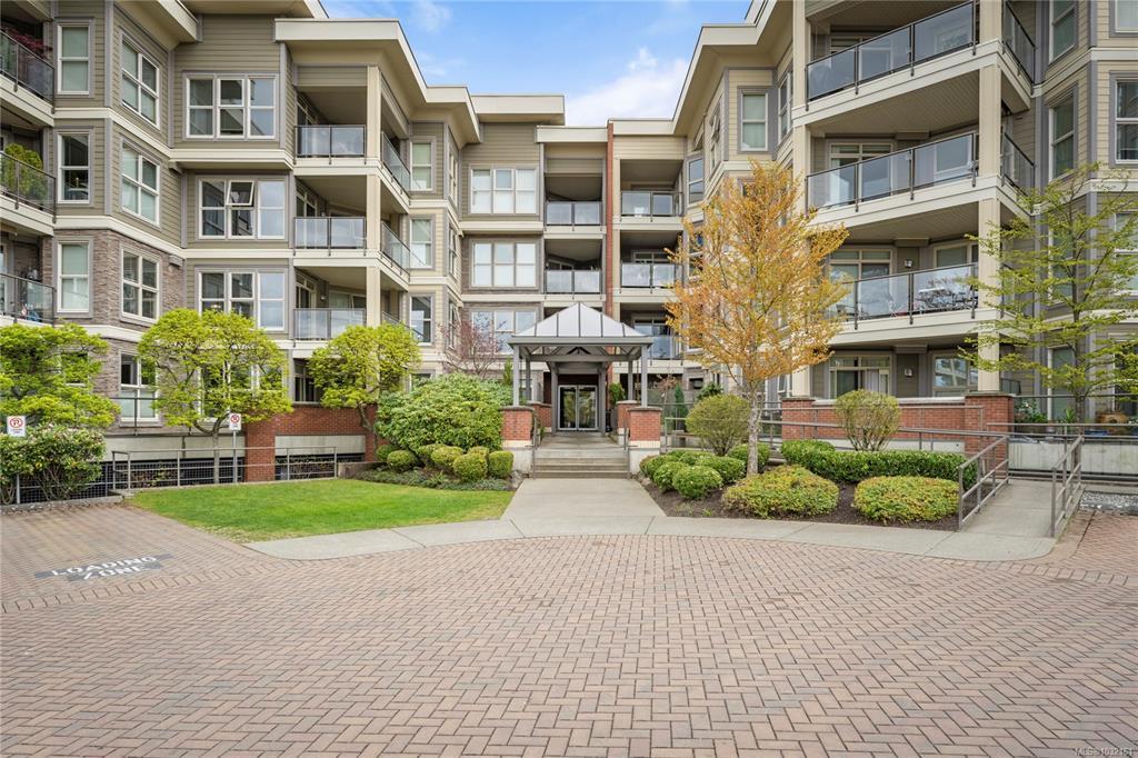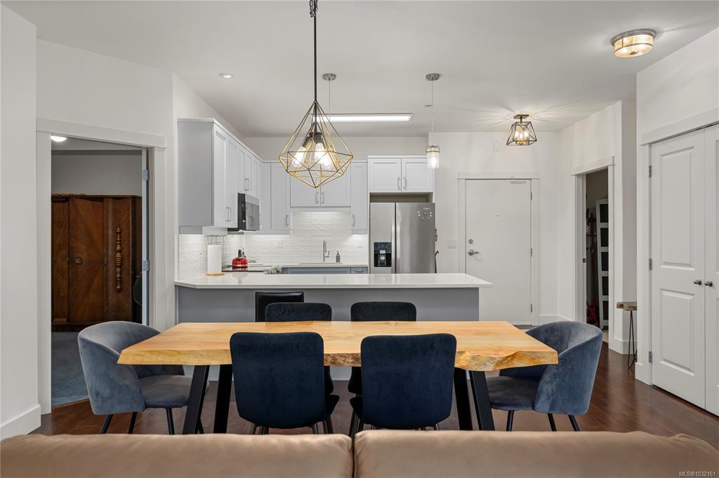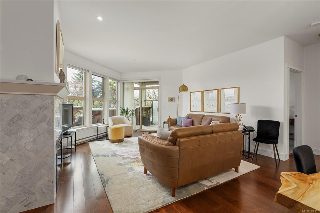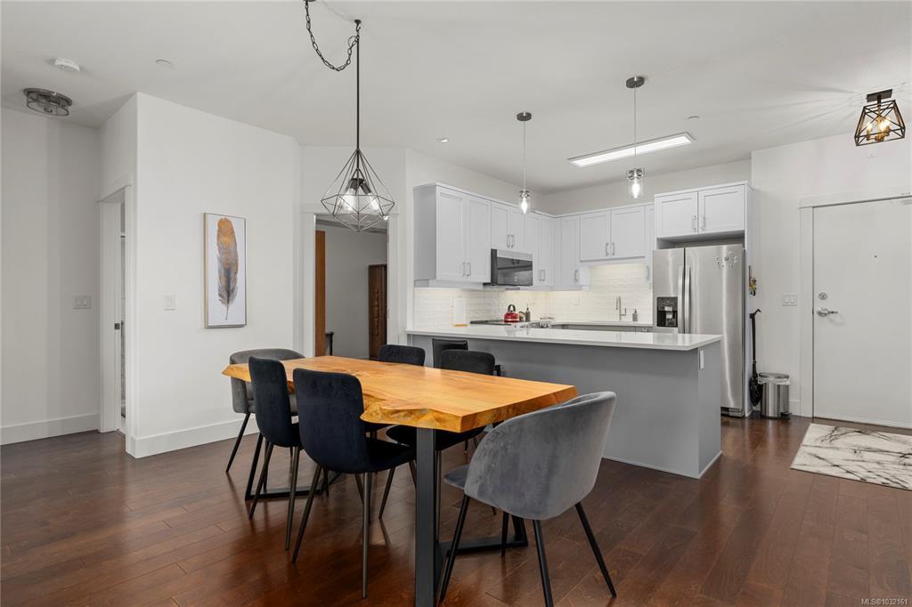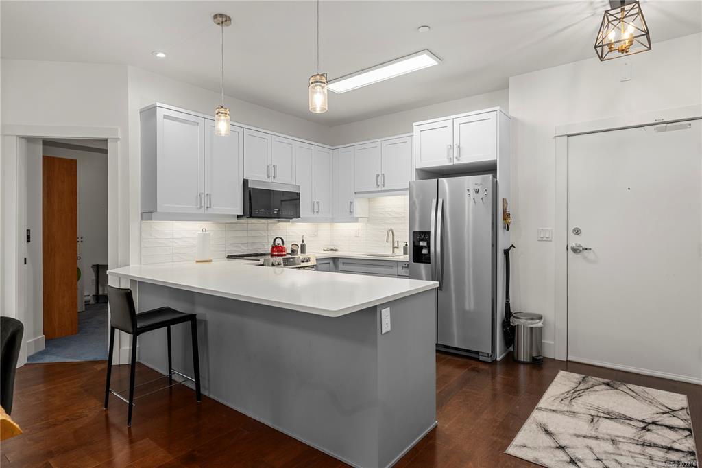 Welcome to this beautiful condo in desirable North Nanaimo. Offering two bedrooms plus a versatile den, this home is within walking distance to shopping, restaurants, schools, entertainment, and transit. Situated in the well-maintained Texada building, this unit features tasteful upgrades including refreshed bathrooms, modern fixtures, and an updated kitchen and fireplace that enhances both style and functionality. Inside, you’ll find hardwood flooring, stainless steel appliances, a kitchen pantry, and 9-foot ceilings that create a bright, open feel. Heated bathroom floors add everyday comfort, and quality window coverings are already in place. The den includes a built-in Murphy bed, making it ideal for guests or a home office. Additional features include in-suite laundry, two parking stalls (one underground and one outside), and a spacious deck accessed from the living room. With no age restrictions, small pets allowed, and rentals permitted, this is a fantastic opportunity.