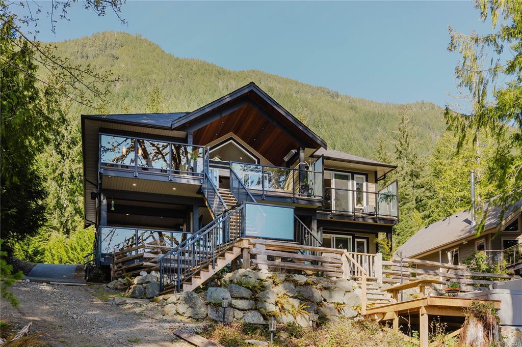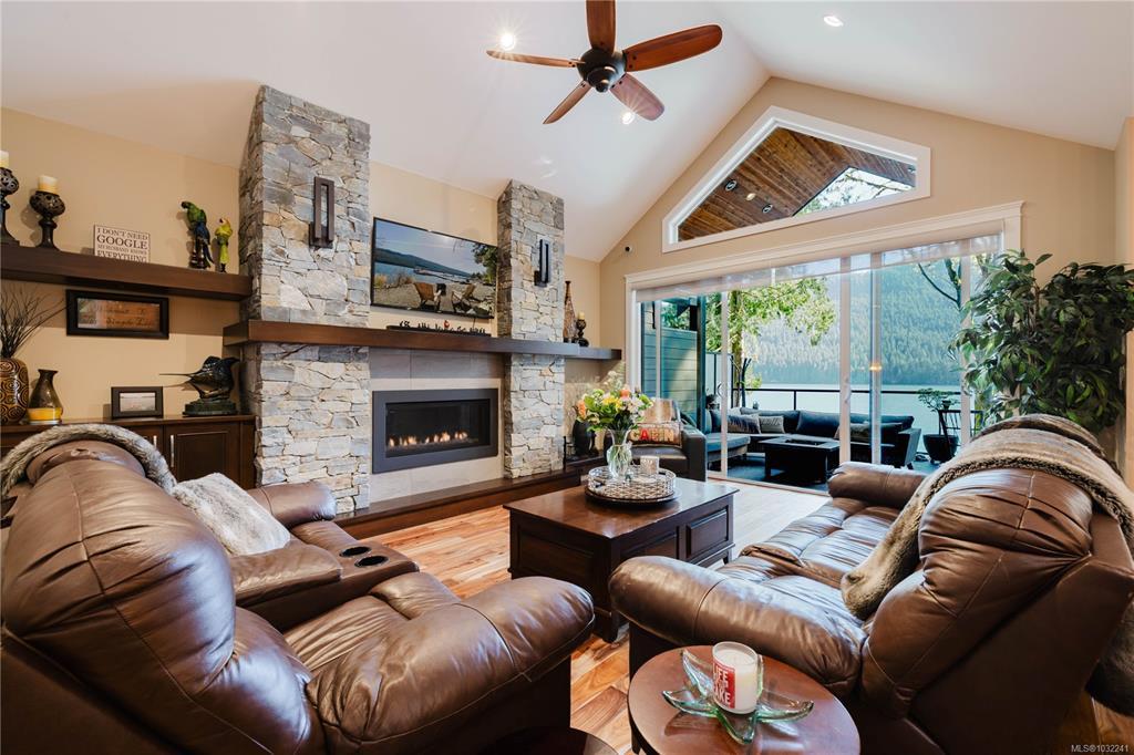 Welcome to an exceptional South-facing waterfront retreat on the tranquil shores of Lake Cowichan. Built in 2017, this stunning home offers a rare blend of luxury, flexibility, & true lakeside living across three levels. The upper floor showcases vaulted ceilings, a striking stone fireplace, & a chef-inspired kitchen with granite counters, all opening to a spectacular deck with panoramic lake views & outdoor kitchen—perfect for entertaining or soaking in sunset evenings. The middle level is ideal for family or guests, featuring its own kitchen, spacious living area, a luxurious second primary suite with ensuite, four additional bedrooms, & a view-filled deck. The lower level adds further living space & storage. Outdoors, embrace the lifestyle with a private dock, gazebo, two boat slips, hot tub, landscaped fenced yard, & a lakeside firepit right at the water’s edge. Peacefully set just minutes from Laketown Ranch & amenities—this is the ultimate West Coast escape.
