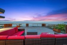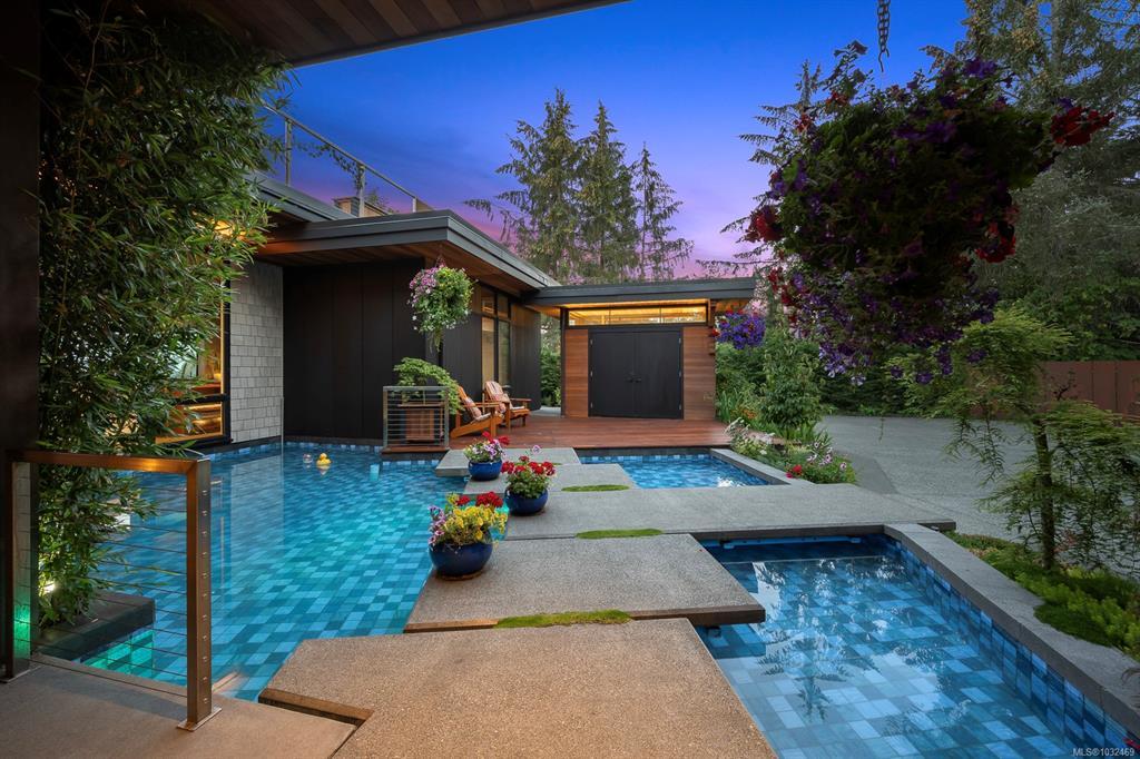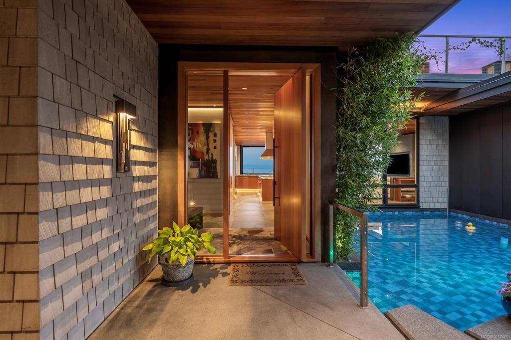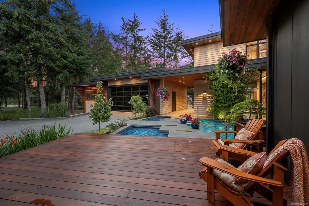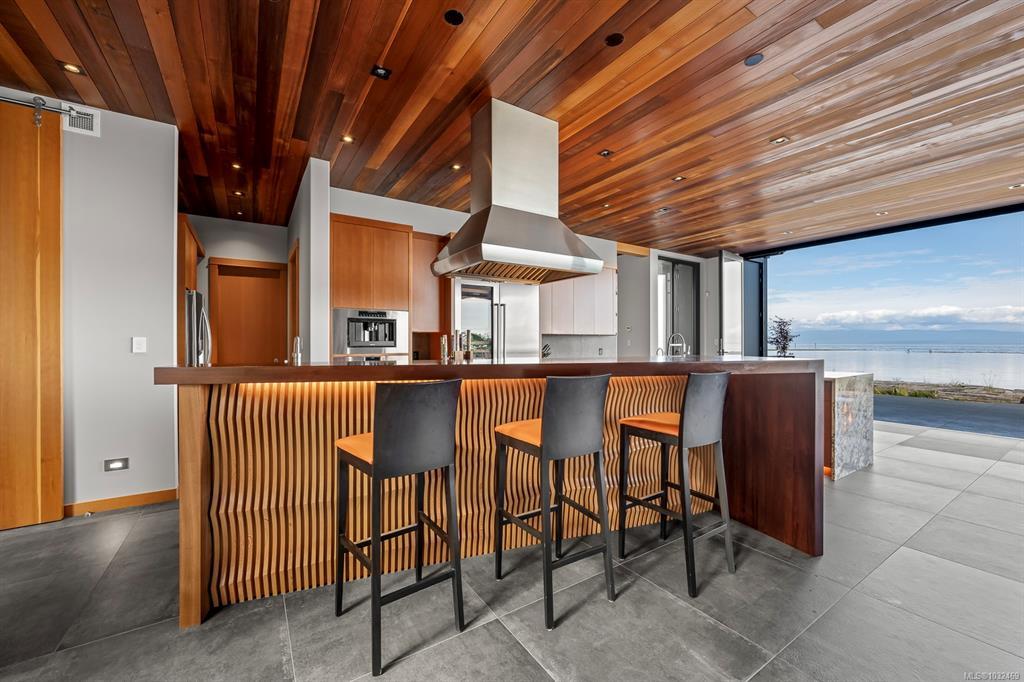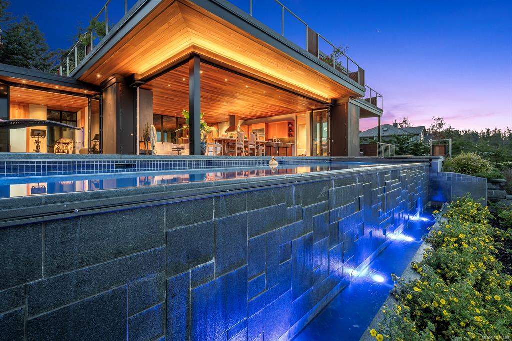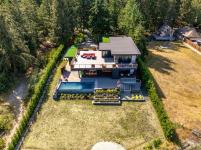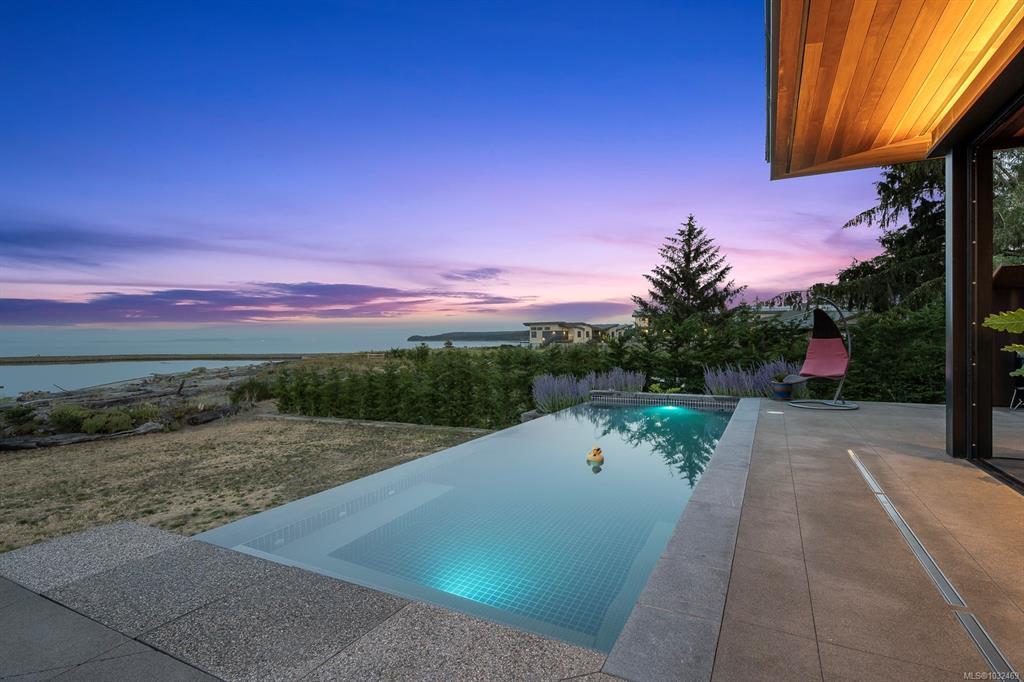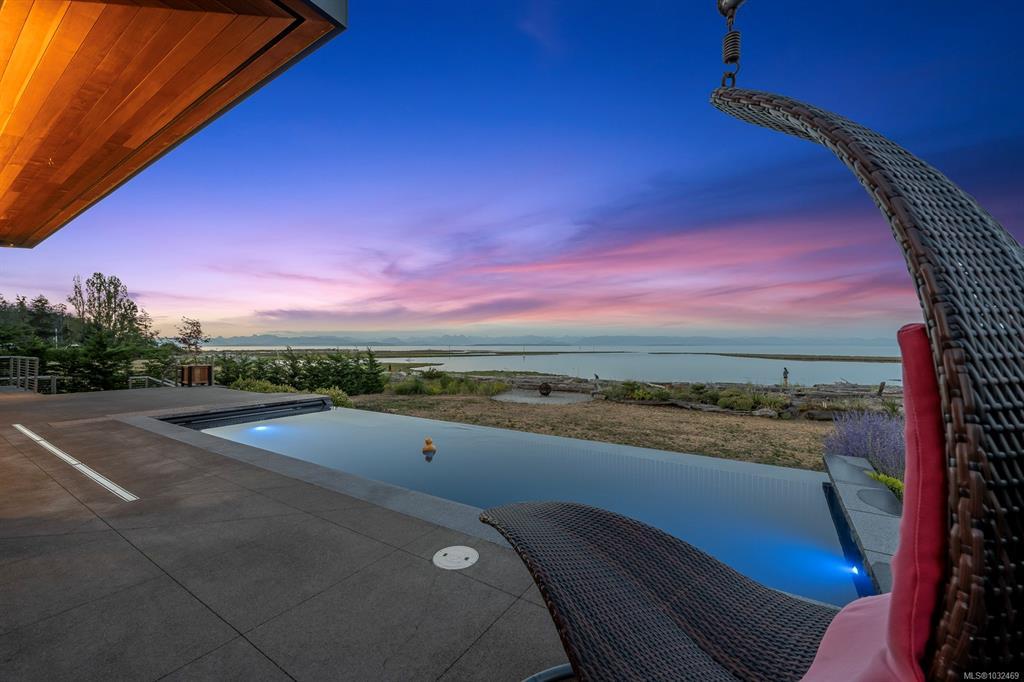 Welcome to the Saratoga Beach House , one of the Comox Valley’s premier walk-on waterfront homes, offering the ultimate Vancouver Island lifestyle. Set on a landscaped 0.8-acre oceanfront lot just moments from the marina, enjoy easy access to boat moorage and launching for spontaneous days on the water. A floating walkway leads to a stunning entrance with panoramic ocean and mountain views. Inside, craftsmanship shines with Brazilian Patagonia granite, custom lighting, a hand-built South American hardwood bar, and automated blinds. Designed for both relaxation and entertaining, the home features a spa-inspired setting with steam shower, jetted tub, hot tub, and an infinity pool with swim jets. Floor-to-ceiling glass doors fully retract, blending indoor and outdoor living. Unwind on the 2,000 sqft rooftop patio and take in breathtaking sunsets. A rare opportunity to own a true West Coast waterfront retreat.