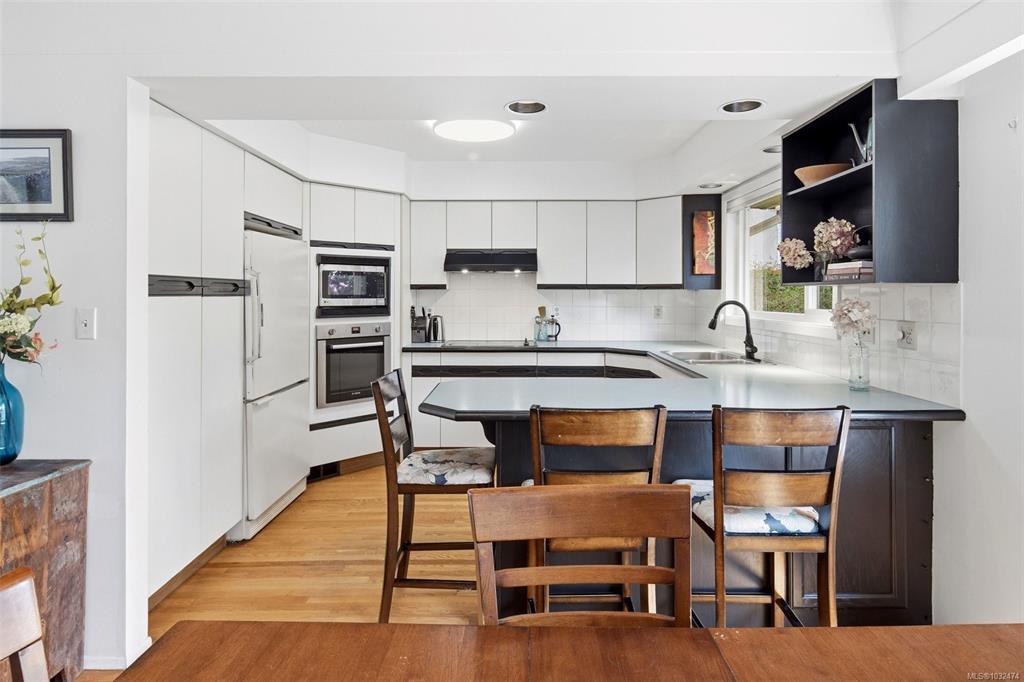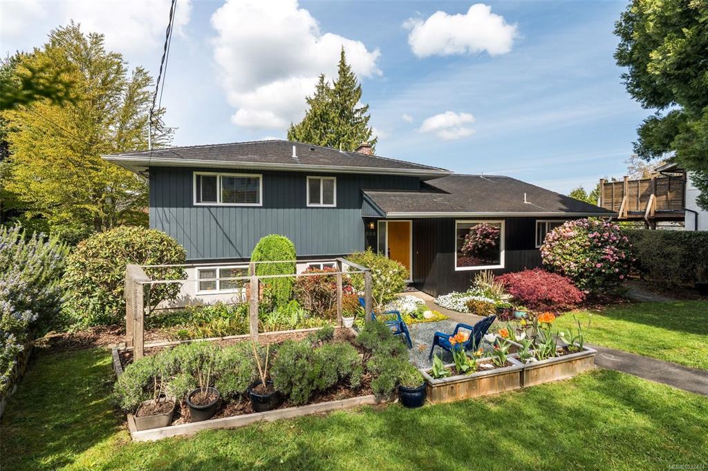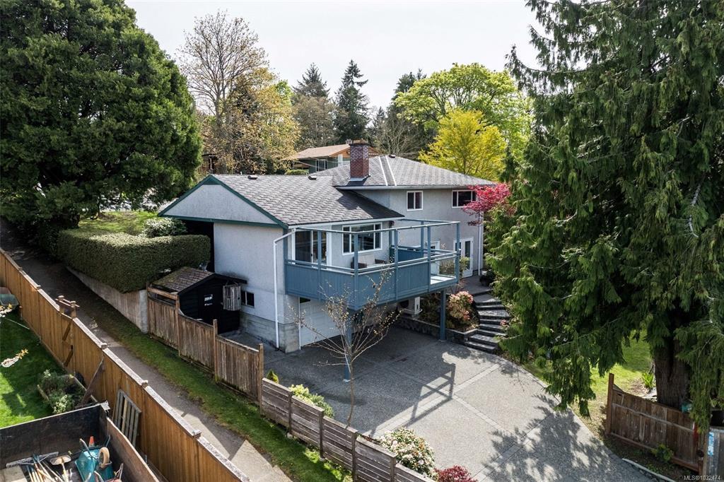 OPEN HOUSE- SATURDAY 1-3 APRIL 25TH.Welcome home! Here is the Esquimalt home that you have been waiting for. Located on a quiet cul-de-sac in a beautiful neighbourhood. Perched high, enjoy views over the tops of neighbouring homes or enjoy the oasis-like backyard with a new shed & fire pit. Stunning, irrigated landscaping throughout the property & a veggie plot. Inside, beautiful oak flooring leads you into a bright, kitchen, dining, living area with a wood burning fireplace and access to a large deck. The upper level has 3 bedrooms & a full bathroom, and access to flexible attic space. The lower level offers a cute, open, 1 bedroom suite with a patio entrance and own private green space. The house is heated and cooled with a Heat Pump. There is handy rear laneway access to the driveway and garage.There is so much to see and so much potential with this home. Be sure to watch the video! Lot & access are perfect for a secondary garden suite!