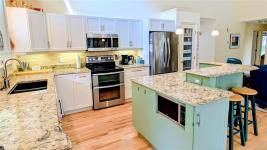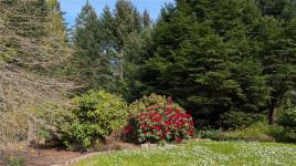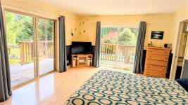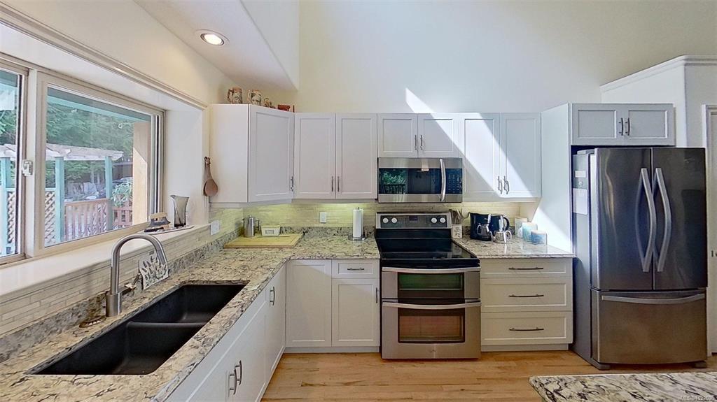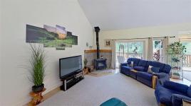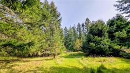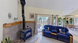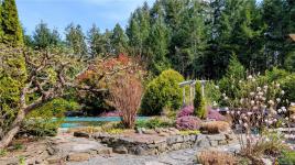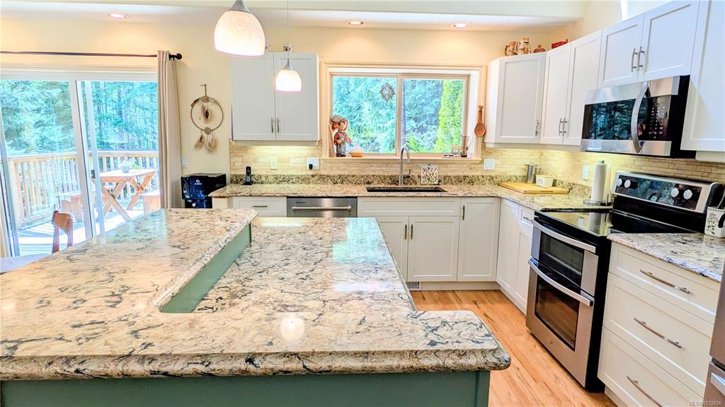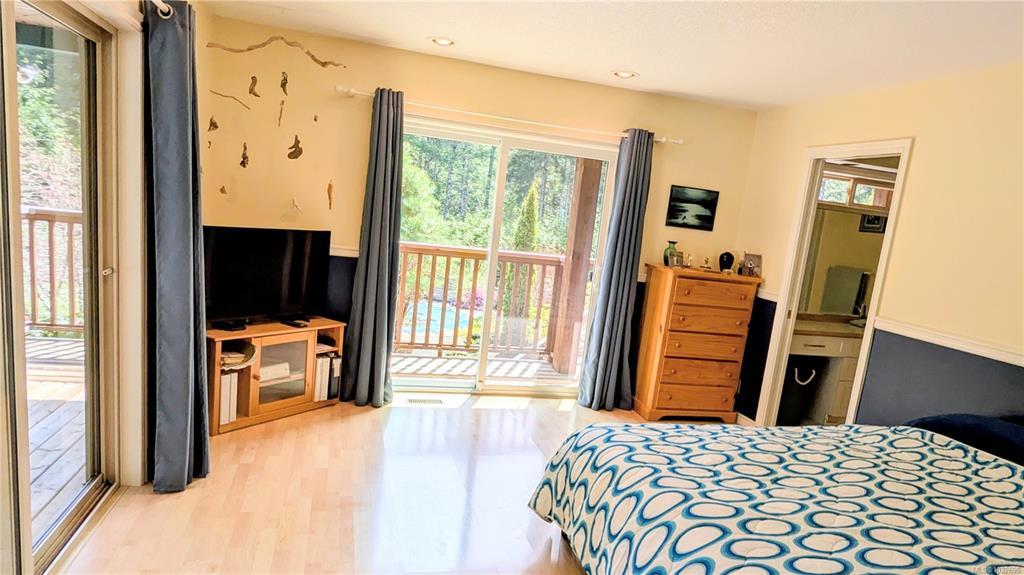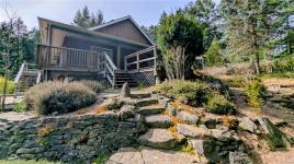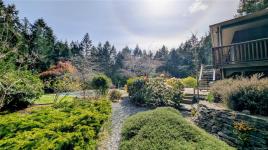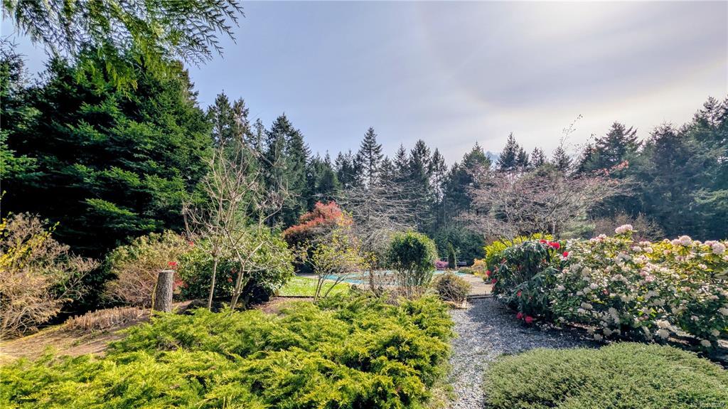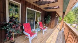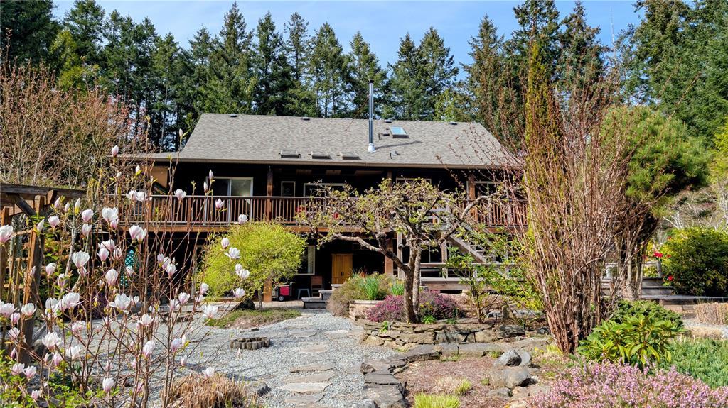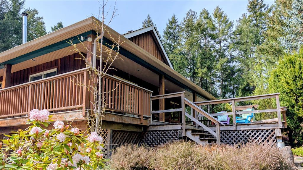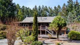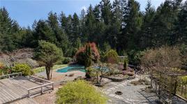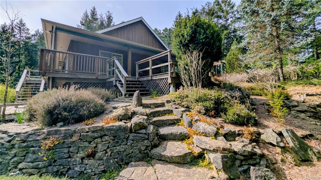Secluded and sun-filled, this private 5-acre property offers a 3-bedroom, 3-bathroom wood sided home in a central location. A gently sloping driveway leads to a cleared setting with mature landscaping and all-day sun. A circular drive welcomes you to this two-level home with a walkout basement, wraparound veranda, and multiple decks for sun or shade. The main level features an open-concept living, kitchen, and dining area with vaulted ceilings, large windows, and sliding glass doors for abundant natural light. The kitchen includes newer cabinetry, granite countertops, and stainless steel appliances. The primary bedroom has a 3-piece ensuite and deck access. The fully finished walkout basement offers flexible space for a studio, family room, or guests, plus a 3-piece bath. Enjoy peaceful garden paths leading to a private in-ground heated pool. A double carport with workshop and tractor shed adds storage and workspace. A rare offering not to be missed.