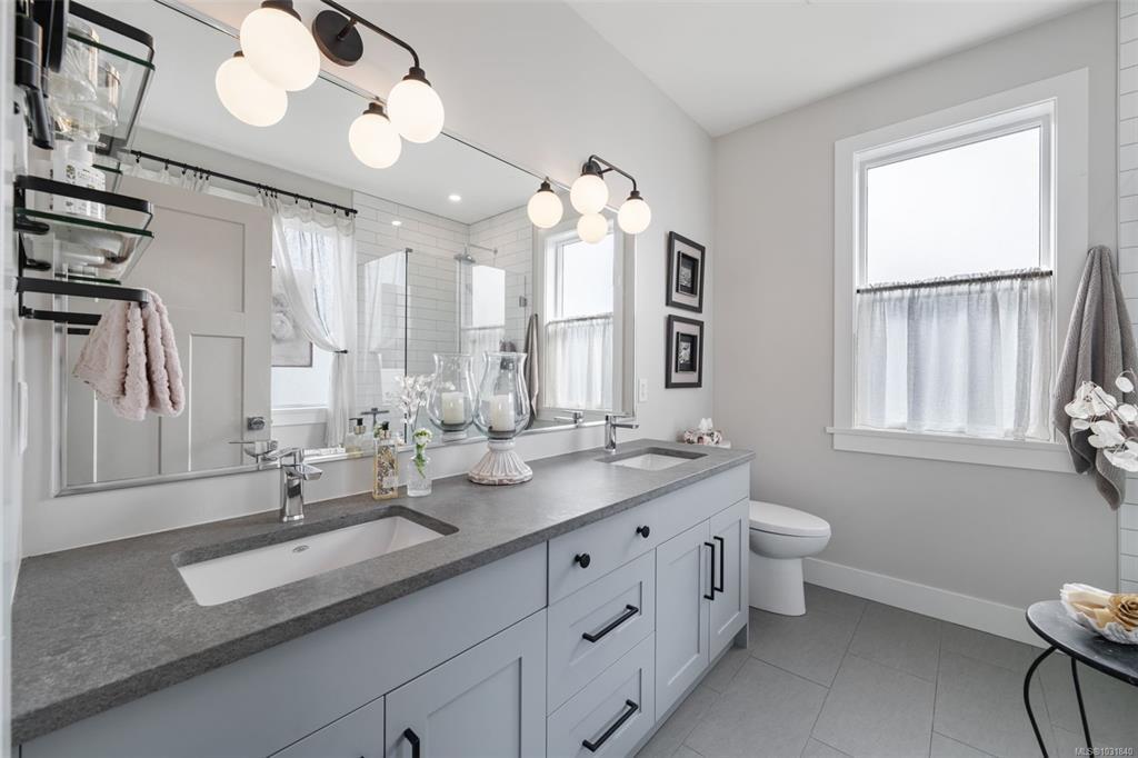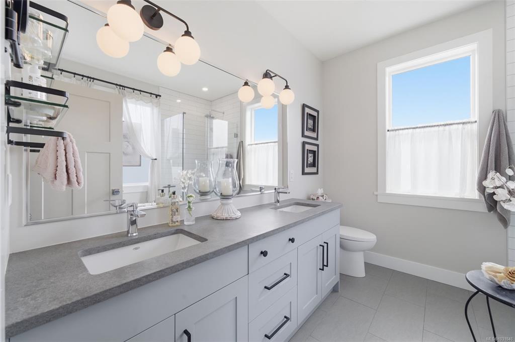 A short stroll to the ocean waters of Brentwood Bay, shops, dining & amenities this 3bd+den, 3bth, 2023 built home has been thoughtfully enhanced w/fresh contemporary paint colours, elegant panelling &mouldings, custom high-end drapery& Hunter Douglas blinds& shutters creating a polished, cohesive feel. On the main level, the bright open-concept living space is anchored by a gourmet kitchen w/premium Bosch appliances & ample workspace to prepare a feast. A den offers a flexible home office or bedroom for aging-in-place living. Upstairs, you'll find 3bds & 2bths. The spacious primary suite is a retreat with a spa-inspired ensuite, stand-alone soaker tub, separate shower & 2 walk-in closets. The laundry room is neatly tucked-away & provides extra storage & a sink. Outside, the fully fenced backyard w/privacy hedge has been beautifully landscaped & has a pergola w/wisteria vines creating a private oasis. Complete w/garage, irrigation system, heat pump, on-demand hot water & heated floors.