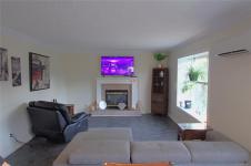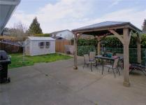 Cozy rancher with big features! Well maintained and thoughtfully designed, ideally suited for a starter family or retiree. The bright open-concept layout offers comfortable living and easy entertaining, with 2 bedrooms and flexibility for a 3rd bedroom. This home is also wheelchair accessible. The updated kitchen features quartz countertops, a generous eating bar, and pantry, flowing into an inviting living area with gas fireplace and window seat. The spacious primary retreat includes a 3-piece ensuite and massive walk-in closet. Enjoy year-round comfort with heat pump air conditioning and on-demand hot water, plus added peace of mind with roof shingles replaced 3 years ago. Step outside to a fully fenced, private backyard complete with a large gazebo for summer entertaining, natural gas BBQ hook-up for endless BBQs, a large storage shed and large patio area.
