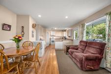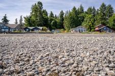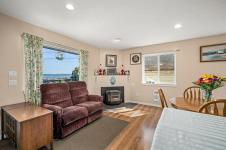 Set on the stunning oceanfront, this three-bedroom, two-bathroom home offers a unique opportunity for comfortable living with strong investment potential. With 1,424 square feet of interior space, there’s excellent renovation potential to personalize or enhance for short term rental income. Enjoy water views from a peaceful, private yard and upper deck. The kitchen is nicely designed with an open floorplan for entertaining; the living room has a pellet stove for comfort during the winter season. The main floor has one bedroom and the remaining two are upstairs where a bonus living room with sundeck looks over the ocean. Located within walking distance to stores and essentials like Tomm's Food Village, Magnolia Court and Georgia Park Store, and just minutes from a marina and shopping, it combines convenience with tranquility. Whether you're looking for a full-time home, seasonal retreat, or a short-term rental investment, this property checks all the boxes.
