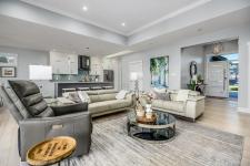 This contemporary rancher is ideally positioned between the 16th & 17th fairways, offering exceptional golf course frontage and unparalleled views down the 11th fairway. Set on a quiet cul de sac at the end of the complex on one of the largest lots, this custom built 2019 home showcases refined craftsmanship, including European white oak engineered hardwood flooring, Innotech tilt and turn windows, quartz countertops, and 11foot ceilings in the great room.