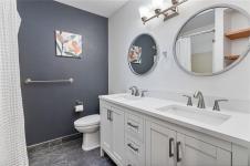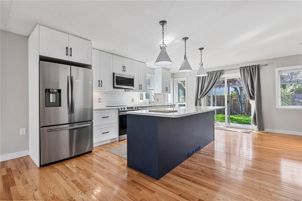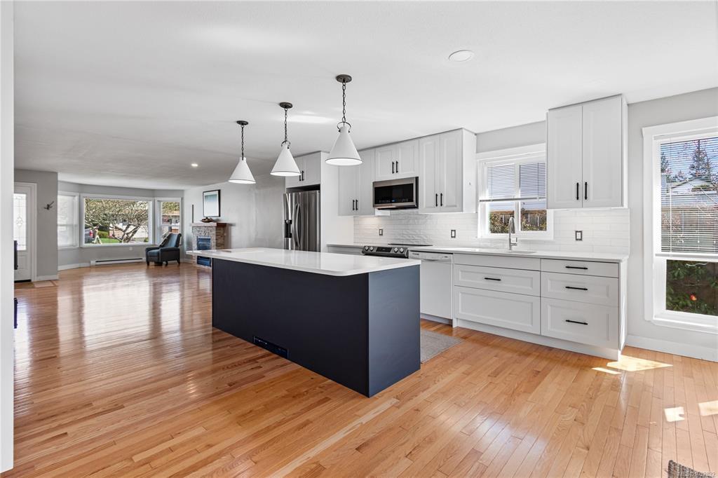Boasting lovely curb appeal, this 3 bdrm, 2 bthrm rancher is conveniently located near shopping, parks, schools & recreation. Upon entry, you'll love the spacious open concept living room with cozy fireplace & lovely rock surround. The stylish and fully updated kitchen is a highlight, offering white cabinetry, stainless steel appliances, quartz countertops & island with breakfast bar. It provides an abundance of storage with custom built-in cabinetry & even includes a dedicated coffee bar area. The kitchen seamlessly flows into the eating area with access to the large backyard. The primary bedroom features a renovated ensuite with exquisite tile work and walk-in closet. Two additional well-sized bdrms, a tastefully updated 5 pc main bath & laundry room complete this home. The backyard offers a fully fenced yard, covered patio, mature landscaping, storage shed & excellent sun exposure. A great spot for kids & pets. This home truly combines comfort, style & an unbeatable location.