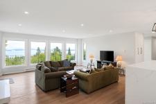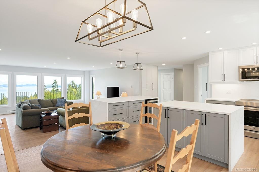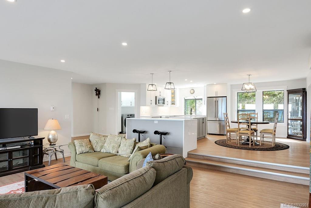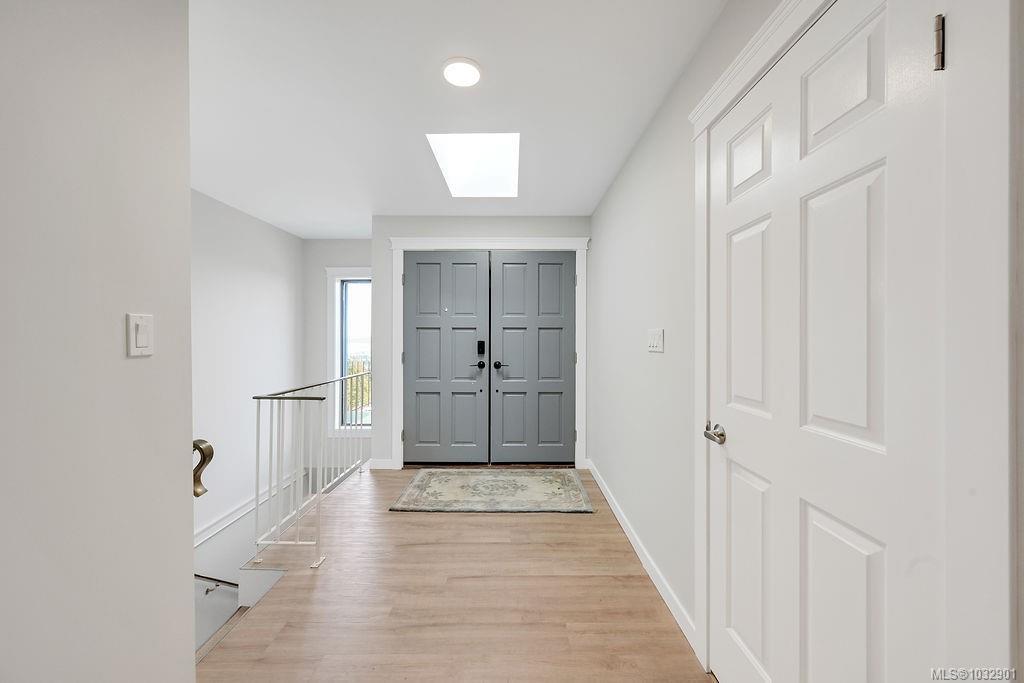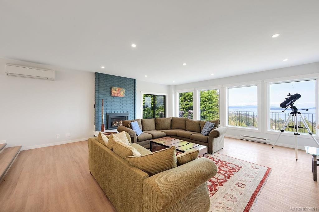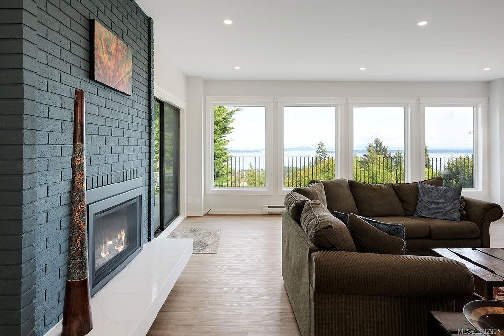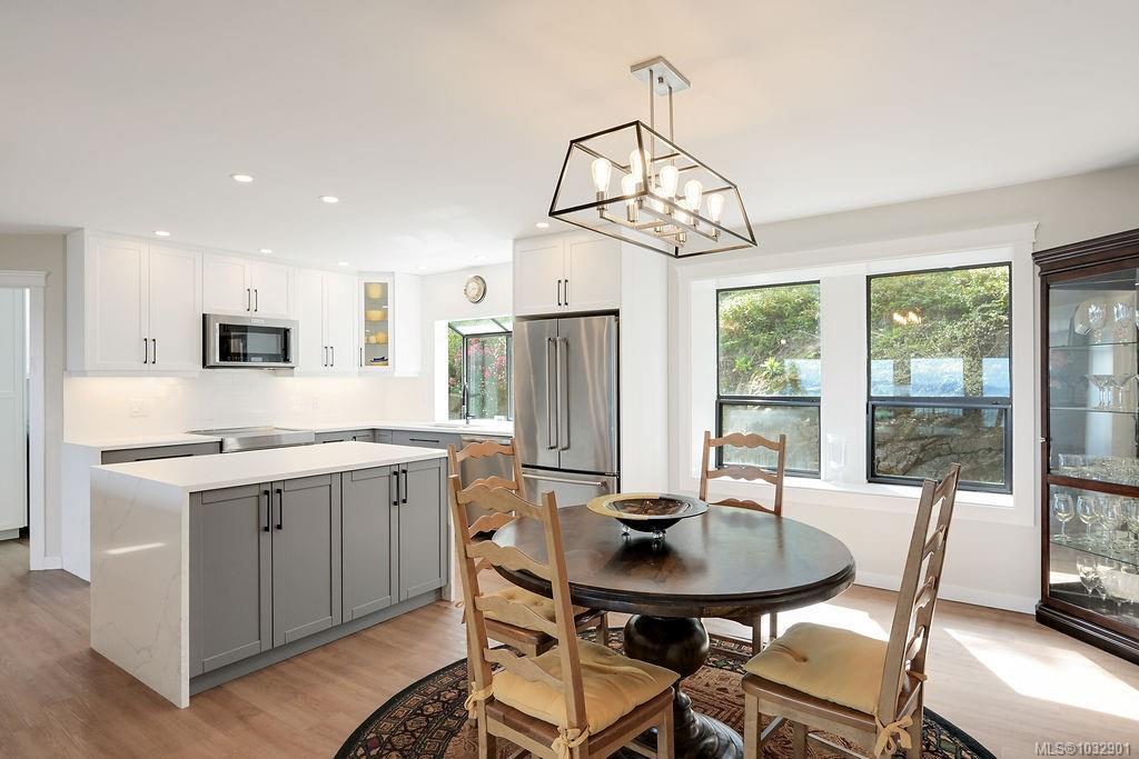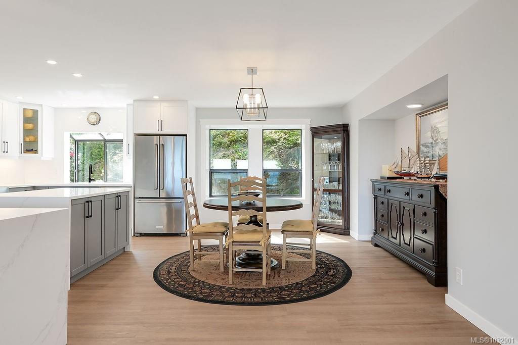 Panoramic ocean & mountain views from nearly every room in this extensively upgraded Dean Park home. Set on a generous 15,000 ft.² lot with natural stone accents & mature landscaping, the main level delivers over 2,200 ft.² of refined living. Bright, open living room with gas fireplace flows to a spacious dining area & updated kitchen with modern cabinetry & pendant lighting. The primary suite features a spa-inspired ensuite with freestanding soaker tub, glass rain shower & marble-look tile. A sunroom stretching over 290 ft.² extends your living space with floor-to-ceiling windows framing the scenery. Workshop, double garage, central vacuum & in-unit laundry round out the practical side. Three bedrooms, three bathrooms, two fireplaces. Over $300,000 in thoughtful renovations throughout. Quiet, established neighbourhood minutes to Sidney, ferries, the airport & local farm markets.