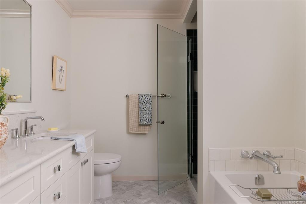 closet and 5-piece ensuite with soaker tub, glass shower and heated floors. Fourth bedroom on