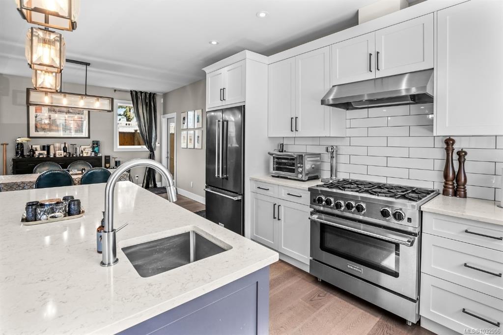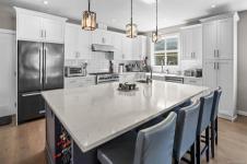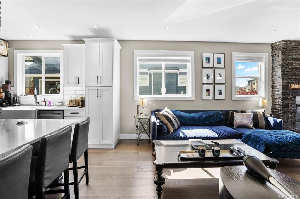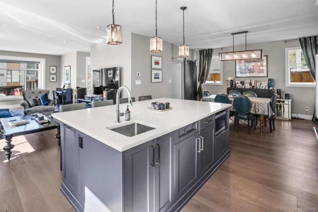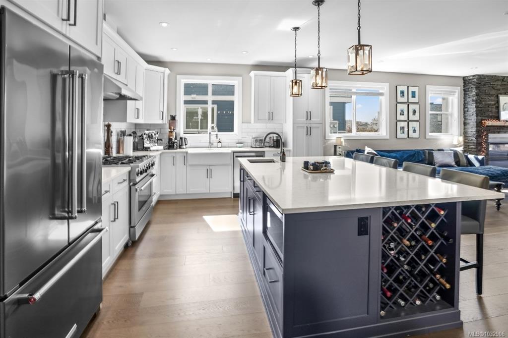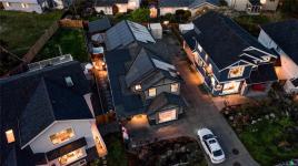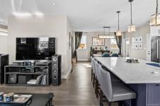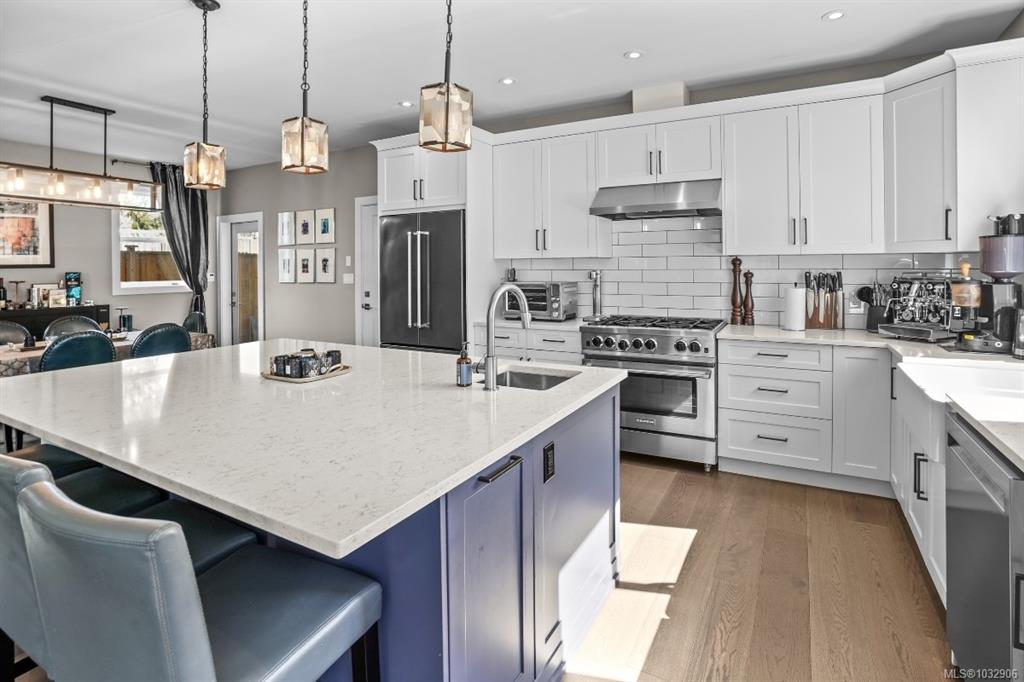 Modern,energy-efficient custom home built to Green Gold standards & designed as a Zero Energy home. Offering 2,255sq ft, this residence features a bright open-concept main level with 9’ ceilings, hardwood floors, and a statement gas fireplace. Chef-inspired kitchen with quartz countertops, oversized 5’x8’ island, prep sink, farmhouse sink, and premium 6-burner Bluestar gas range ideal for entertaining with seamless flow through dining and living spaces to a private outdoor oasis. Upstairs offers 3 bedrooms, including a spacious primary suite with walk-in closet and spa-inspired ensuite with steam shower. Fully self-contained 1-bed suite above the garage provides excellent income or multigenerational flexibility. Exceptional outdoor living with custom cedar sauna, Arctic Spa saltwater hottub, Coldture cold plunge, gas firepit, and BBQ hookup. Additional features include full solar array, EV charger, heat pump with A/C, tankless HW, wine cellar, security system, heated plumbing, & crawl.