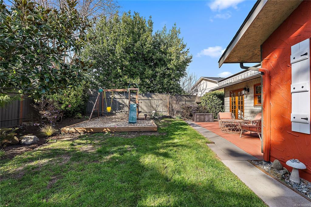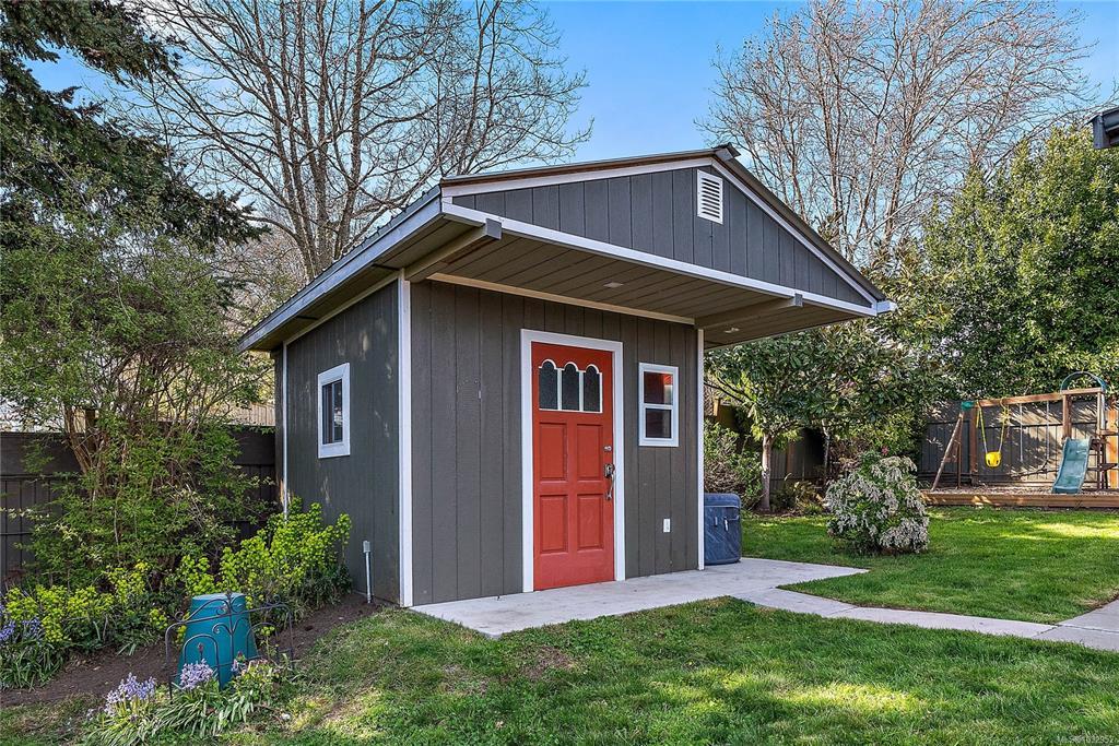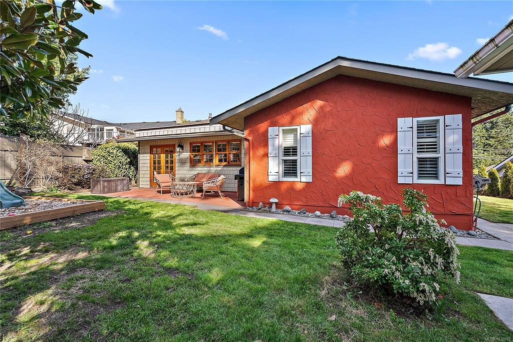 OPEN HOUSE - Sat Apr 25 1-3pm - Beautifully updated 3-bedroom, 2-bath rancher on a spacious Saanich East lot just under 10,000 sq ft. Enjoy comfortable one-level living with walkout access to a lovely, private backyard featuring mature landscaping, a new detached workshop/office space, and full fencing. Quality improvements include engineered hardwood, vinyl windows, updated kitchen, 2019 roof, gas fireplace, newer hot water tank, 2025 heat pump system, and more. Excellent indoor-outdoor flow with a Mediterranean-inspired layout perfect for entertaining. The home offers 1,337 sq ft of living space plus a 394 sq ft garage and a 102 sq ft detached workshop/office, along with generous patio areas and added storage. Ideally situated near countless amenities with University Heights, Tuscany Village, and UVic just minutes away. Ample off-street parking with an oversized driveway, covered pullout, and double garage for all your needs. Don't miss this great opportunity.