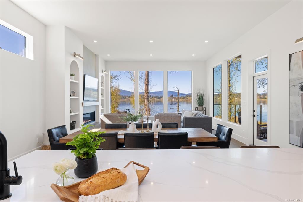 Discover an unparalleled lakefront lifestyle in this gorgeous 4 bed, 4 bath, 3500sqft custom-crafted, main-level-entry home with a legal suite & walkout basement, nestled on serene Quamichan Lake. The expansive main floor boasts soaring ceilings, elegant engineered hardwood & bespoke cabinetry by Heronwood. The great room offers a gourmet kitchen with a gas range, dual pantries & a spacious dining area, all anchored by a cozy living space with grand picture windows & a gas fireplace. Step onto the semi-covered deck from both the living area & primary suite, where breathtaking views & sunsets await. The primary retreat features a stunning ensuite & a walk-through closet leading to a convenient laundry/mudroom. Downstairs, enjoy an additional bedroom, 4pc bath, incredible storage/workshop & the rare legal 1 bed suite—ideal for guests or rental income. Lush landscaping, level driveway parking, oversized double garage & a peaceful neighborhood complete this sophisticated, welcoming oasis.