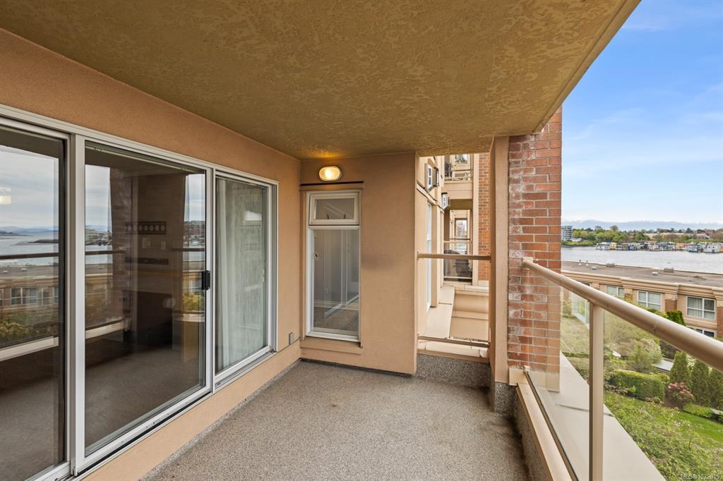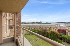 Positioned in the sought-after Songhees waterfront community, this south-facing residence delivers harbour views, excellent natural light, and true walkable living — From the terrace and main living areas, enjoy the steady movement of boats, kayaks, and seaplanes that make this location uniquely Victoria.Steps from the Songhees Walkway, you’re connected to waterfront paths, marinas, parks, and some of the city’s best dining — all within minutes. Offering just under 1,440 sq. ft., this fully remodelled home features 2 bedrooms, 2 bathrooms, and a den, plus a generous terrace. The interior showcases newer hardwood flooring, crown moulding, and exceptional storage. The kitchen is finished with terrazzo tile and stone countertops, while a gas fireplace adds warmth to the main living space. The spacious primary suite includes a recently renovated ensuite completed with luxury finishes and craftsmanship. A well-appointed harbour front home in one of Victoria’s most established communities