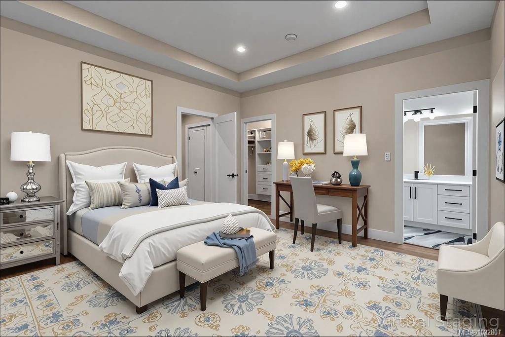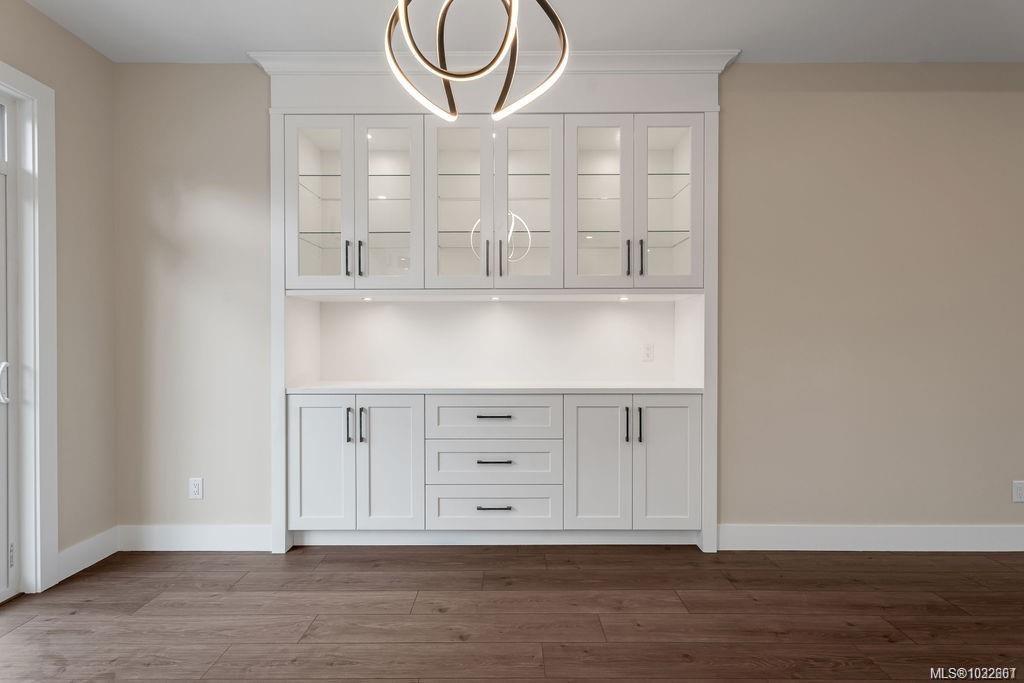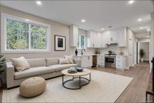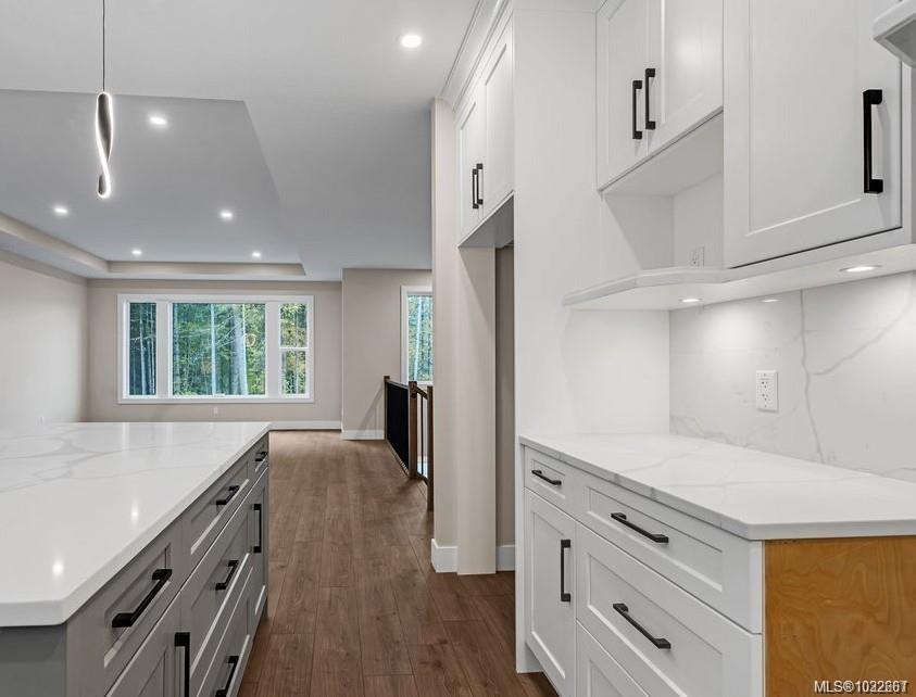 A modern & private home where thoughtful details and quality finishes shine throughout. An open-concept main level offers great flow between the living, kitchen, and dining areas. The living room features a tray ceiling and cozy fireplace, while the dining area includes custom built-in cabinetry. The kitchen features a spacious island, quartz countertops and elegant lighting. From here, step out to the large deck, perfect for entertaining. The primary suite includes a walk-in closet and ensuite. Two more bedrooms and a full main bath complete the upper level. On the entrance level, you’ll find a versatile bedroom or home office with exterior entrance, plus a self-contained 2-bed legal suite, ideal for extended family or mortgage helper. Located in a sought-after neighbourhood with close access to schools, and amenities, this home offers a perfect balance of modern style and practical living.