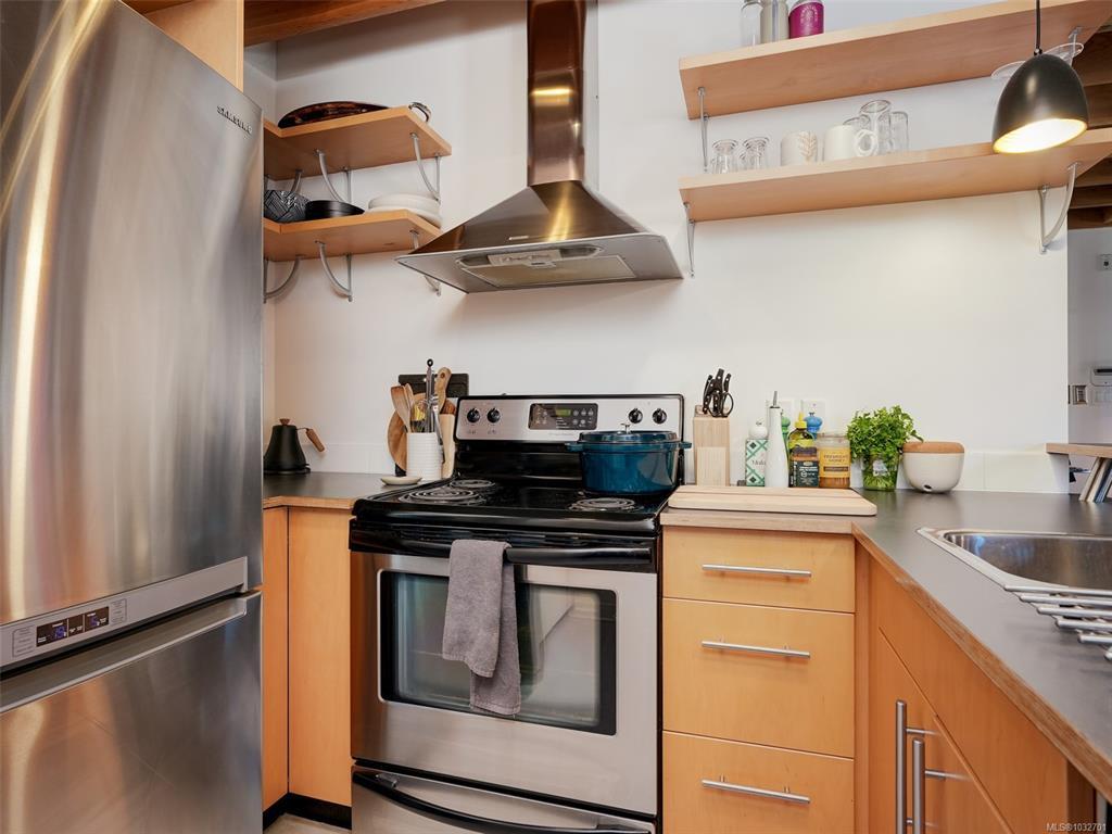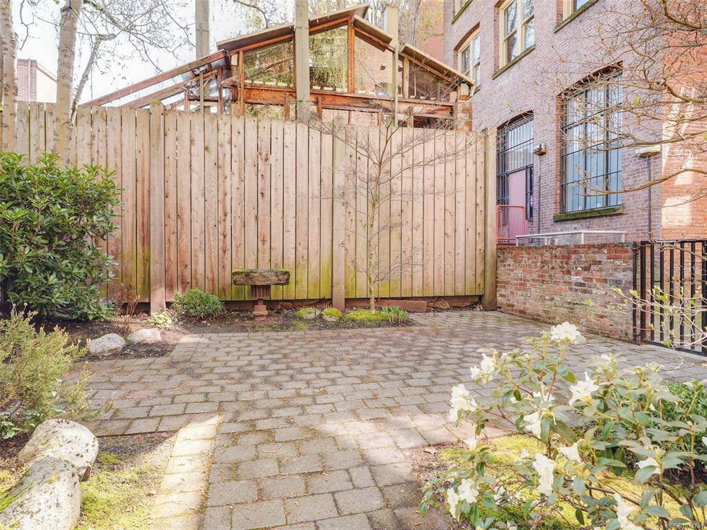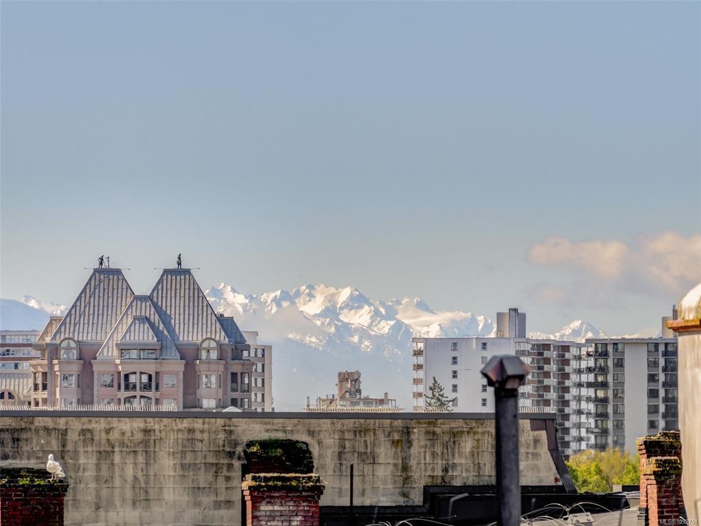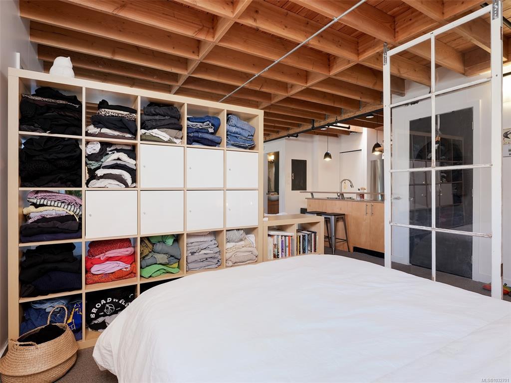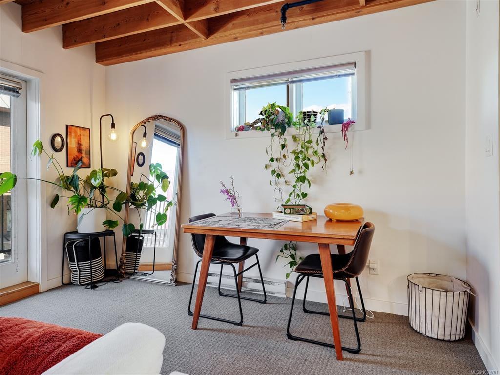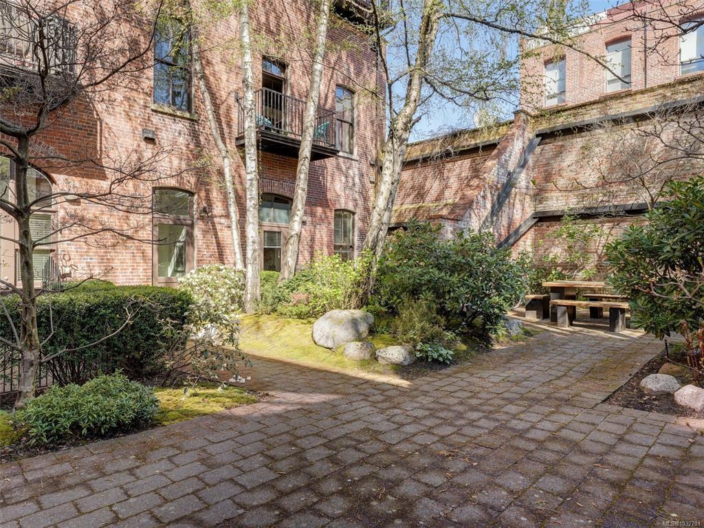Top floor studio in the iconic Morley Soda Factory, an architecturally significant heritage building in the heart of Old Town Victoria. Built in 1875 and restored in 2009, this boutique 9-unit building blends historic charm with modern living. This 560 sq ft loft-style suite features exposed wood beam ceilings, windows on three sides, and a skylight that fills the space with natural light. Open-concept layout offers flexible living and sleeping areas, plus a full kitchen, in-suite laundry, and storage. Private balcony with views of Old Town and the mountains. Zoned OTD-1 (Live/Work) and pet friendly, with a landscaped common courtyard. Steps to the Inner Harbour, restaurants, shops, and Chinatown. Walk Score 99. Listed nearly $70k below assessed value. A rare opportunity to own a piece of Victoria history in a creative live/work community, surrounded by cafés, galleries, waterfront paths and the charm of the city’s historic commercial district.