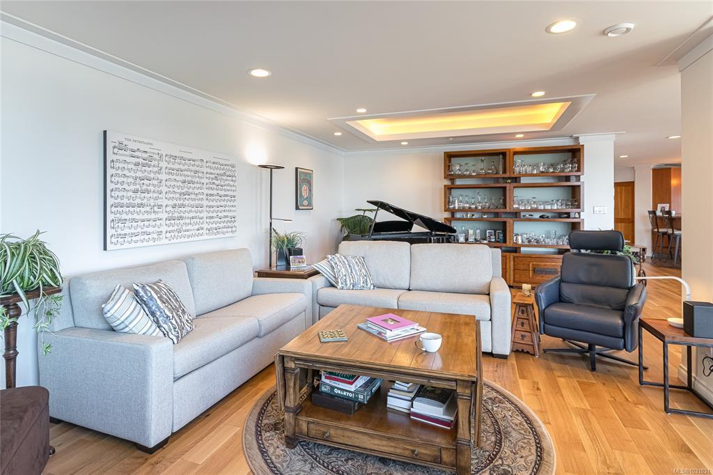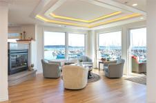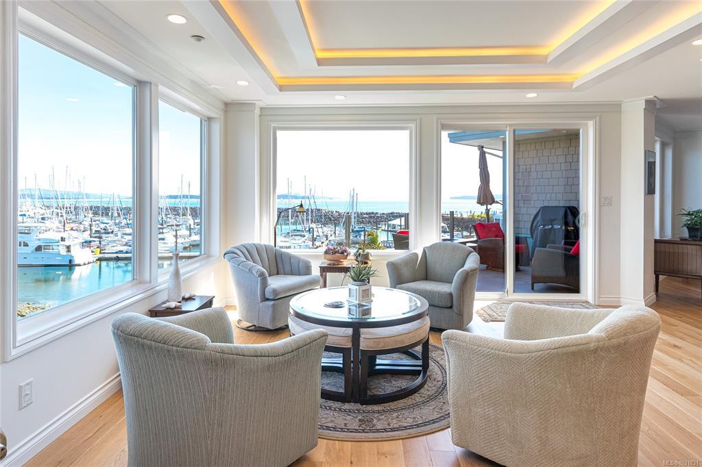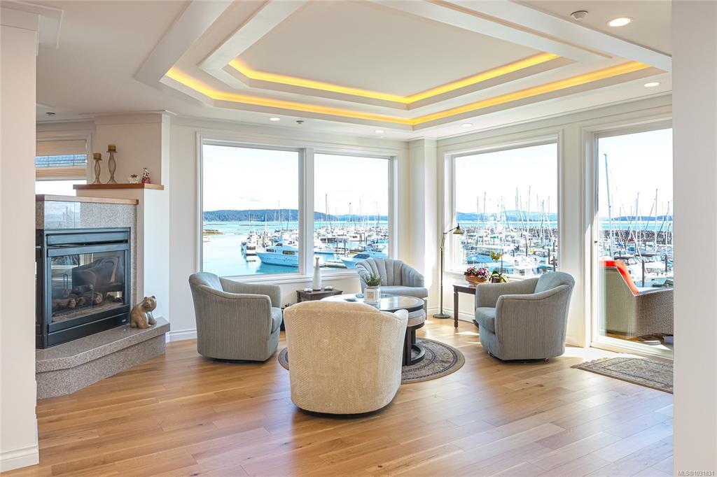 Commanding ocean & marina views define this exclusive Marina Point residence an exemplary blend of quality & luxury West Coast living. Fabulous one-level waterfront living, this boutique 2005 concrete & steel building offers just 5 executive suites with secure, wheelchair-friendly design. Direct elevator access to your front door from the secure underground garage opens to a bright 2268 sq ft home, where panoramic ocean views to Mt. Baker from all principal rooms are simply stunning. The open-concept layout seamlessly melds the luxuries of a fine home with the convenience of condominium living ideal for downsizing. Gourmet kitchen w/ high-end appliances flows into a dining & elegant living room w/fireplace. Primary BR w/ spa ensuite, 2nd BR across from 3pc BA. In-suite laundry & parking for 2. Steps to the waterfront. Located a level easy 2 block walk to Beacon, enjoy Sidney by the Sea’s charming shops, cafés, waterfront paths, marina life, year-round events & easy access to amenities