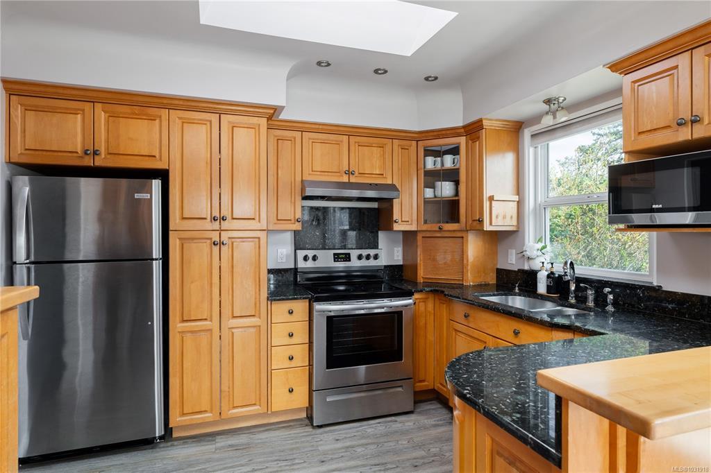 **Open House Sat. Apr 25th, 1pm to 230pm & Sun 11am to 1230pm** Welcome to this charming, well maintained home in the central Glanford neighbourhood of Saanich, perfectly positioned between the Trans Canada and Pat Bay Highways for easy access in every direction. Offering an ideal blend of comfort and functionality, this home features a stunning backyard, updated flooring along with a new roof and gutters completed in 2024, providing peace of mind for years to come. The main level features a spacious front family room with a cozy gas fireplace, while the back of the home opens to a bright living and dining area and functional kitchen overlooking the sunny backyard. Two bedrooms, a full bath, and laundry complete this level. Upstairs, the private primary retreat offers an ensuite, walk in closet, and rooftop deck to enjoy evening sun. Set on a flat, fully fenced lot ideal for kids, pets, and entertaining, all close to parks, schools, and shopping.
