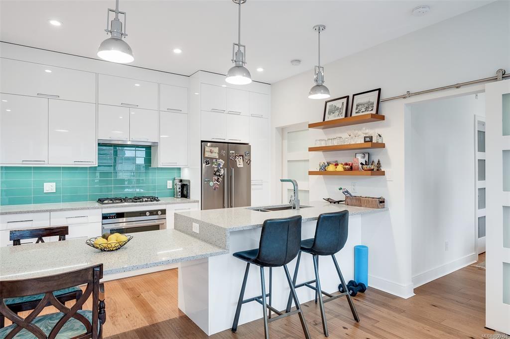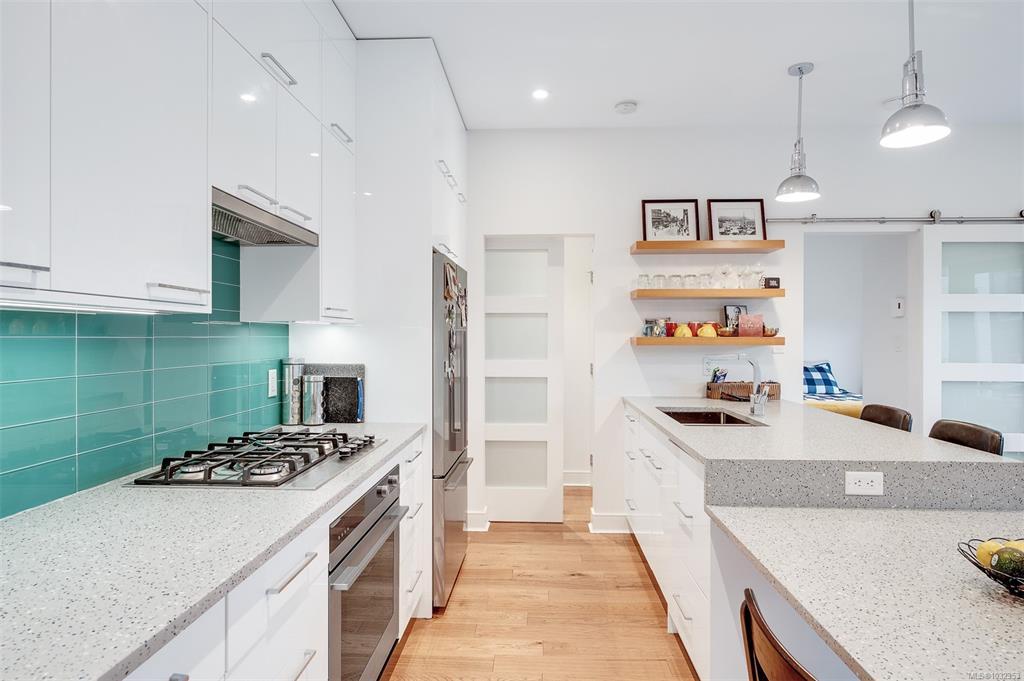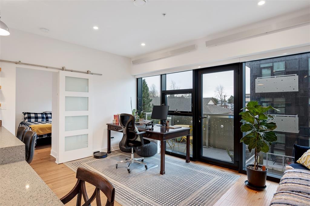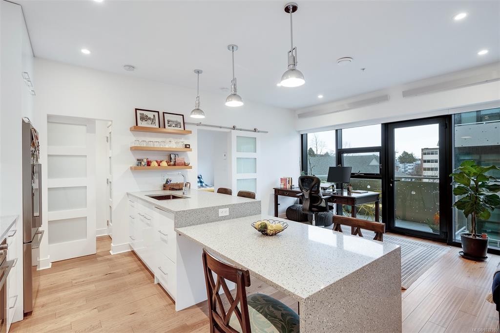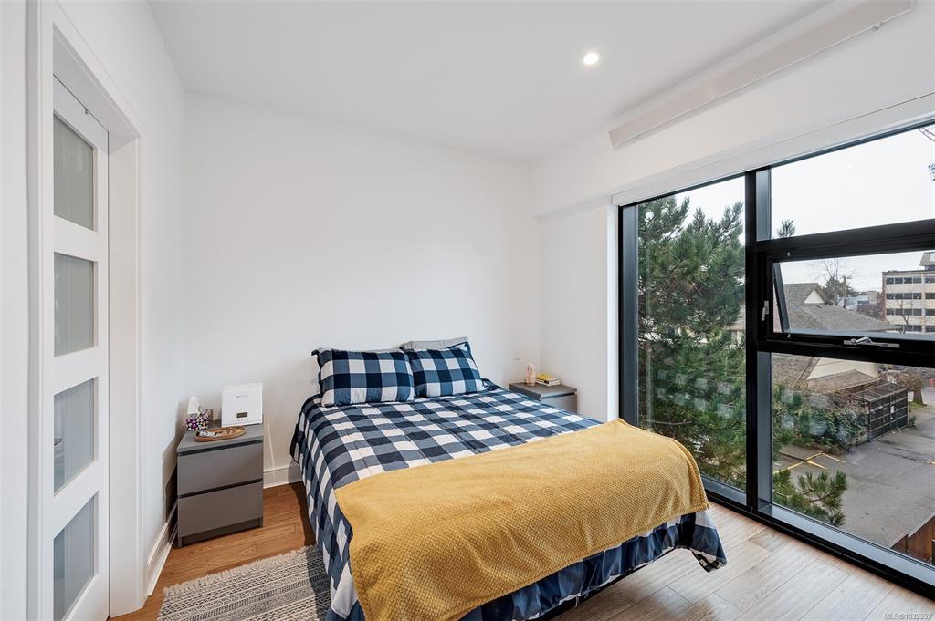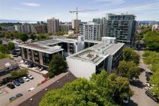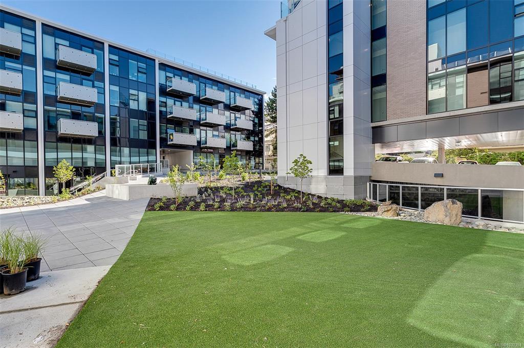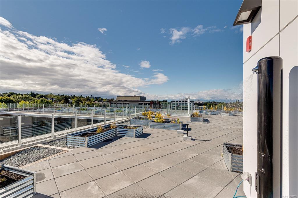 Elevate your lifestyle with this sleek and modern end-unit 2 bed 2 bath condo, built in 2021, located in the heart of downtown Victoria. This concrete and steel building combines urban living with ultimate convenience. Step outside to find the city’s coolest cafés, restaurants, and shops just moments away, or unwind on the stunning rooftop patio featuring garden plots. Inside, the 9-foot ceilings and open layout create a fresh and inviting vibe, with high-end finishes. Enjoy cooking with a premium gas range and quartz countertops, entertain effortlessly with two dishwashers, and indulge in the luxury of heated bathroom floors. In-suite laundry, underground parking, a storage locker, and bike storage. Whether you're a first-time buyer, a savvy investor, or looking for the perfect city pad, this unit offers flexible possibilities—including generating revenue as a mid-term furnished rental. Stylish, functional, and perfectly located, this home is your key to downtown cool living.