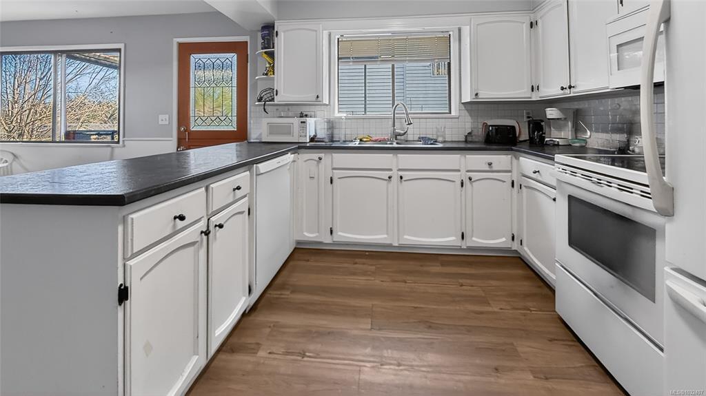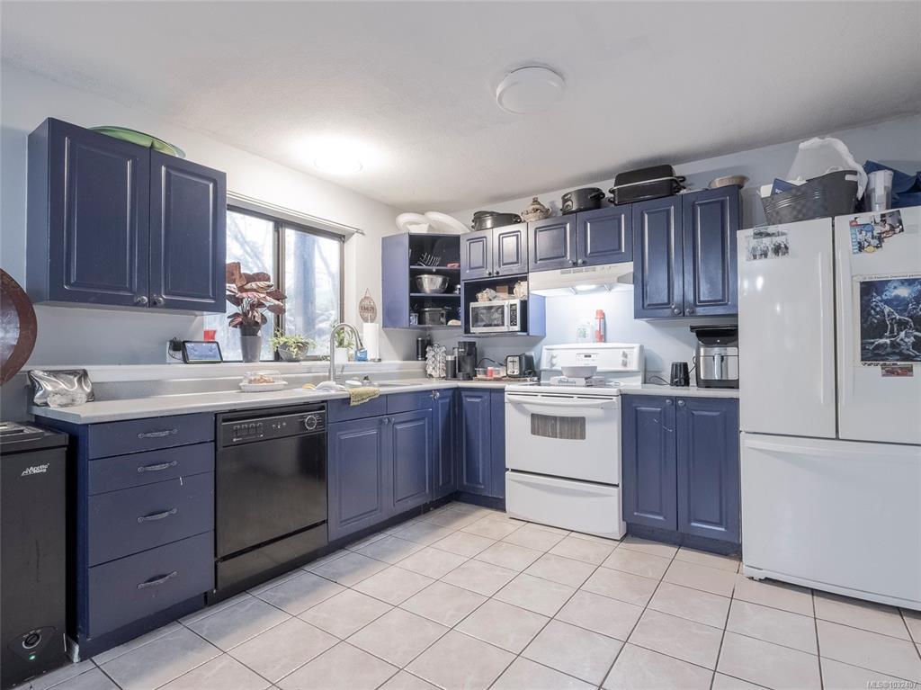 Opportunity to own a full duplex in central Courtenay - ideal as an investment property, for multi-generational living, or for living in one unit while generating income from the other. Both units are currently tenanted, offering immediate rental income. Each self-contained suite features a spacious layout with 3 bdrms and 2 bathrms, providing nearly 3,000sqft of comfortable living space. Both homes offer bright kitchens, generous living areas with cozy gas fireplaces, in-suite laundry, and well-designed floorplans that feel open and functional. The upper unit includes recent laminate flooring updates throughout the main living areas. Set on a fully fenced corner lot with ample parking and directly across from access to scenic walking trails, the property is just minutes from Puntledge Park, schools, and everyday amenities. Whether you're looking to offset your mortgage or accommodate extended family, this property delivers flexibility in a welcoming, family-friendly neighbourhood.