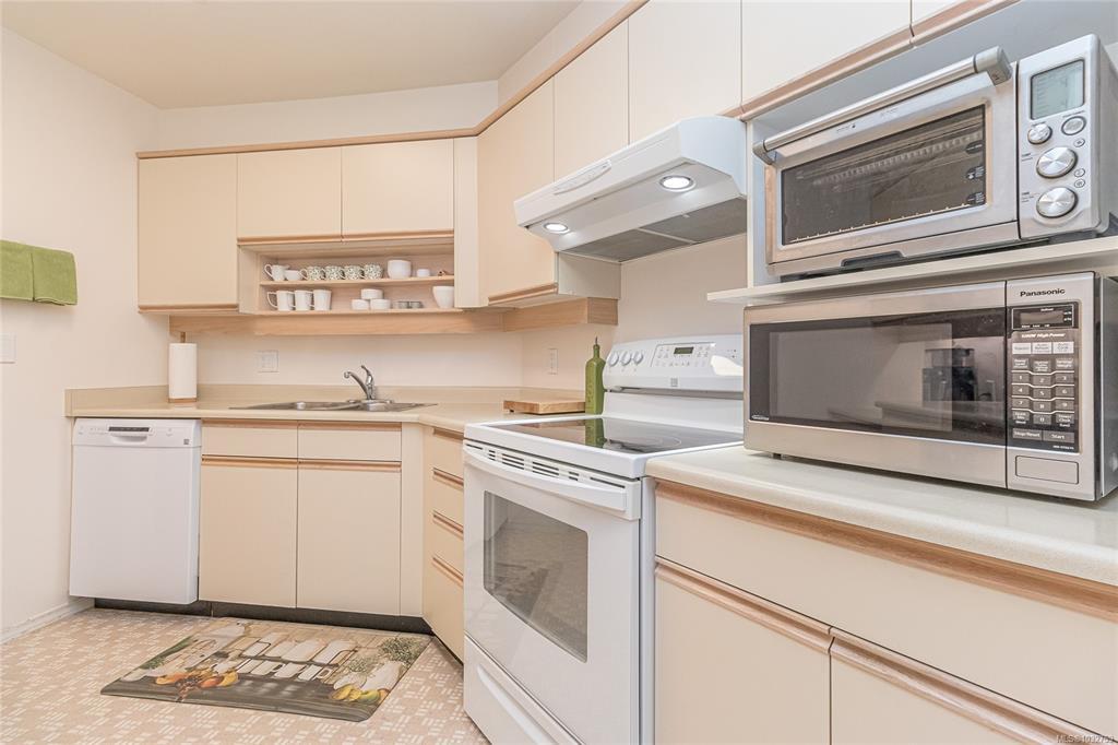 Welcome to the Willows - a well-managed, fully remediated complex. Bright and spacious 2 BR, 2 BA suite that is tucked away on the quiet side of the Complex. Located in Saanich's most up-and-coming walkable and desirable neighbourhood. An easy reach to Tuscany Village, University Heights, a multitude of restaurants, the University and other amenities. This home offers a comfortable lifestyle that is both gracious and attractive. The primary bedroom has a 4-piece ensuite and a lot of closet space. The 2nd bedroom has a Murphy bed, and it provides lots of extra space. Great walk-through kitchen that boasts ample cabinets and efficient work space, an open area dining/living room with an electric fireplace and an enclosed sunroom. A separate storage room and in-suite laundry. Secure outdoor parking, bike storage and extra storage in the parking stall. Pets allowed, workshop and guest suite too. This home is move-in ready with a negotiable possession date.