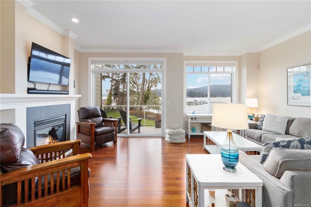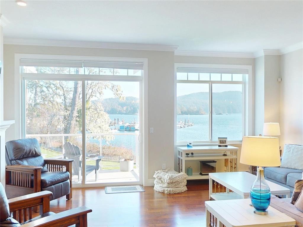 Absolute Oceanfront in Heron View! This 2,933 sq ft 4BR, 4 bath home holds a prime waterfront position with unobstructed views and regular wildlife sightings, including seals, otters, occasional orcas and a myriad of birdlife. Enjoy resort-style amenities including tennis, pickleball, swimming, fitness facilities, and a communal fire pit for relaxed gatherings. The home features high ceilings, crown moulding, and a granite kitchen with Wolf stove and Sub-Zero fridge on the main level. The spacious primary bedroom captures the ocean outlook, while the walkout level with stellar oceanviews offers a convenient kitchenette ideal for entertaining, with access to a large patio and lawn at the water’s edge. Gas fireplaces on all three levels. Adjacent to the marina, steps to dining, and an easy walk to Whiffin Spit. Well-managed development with a strong reputation. Secure, low-maintenance, with pride of ownership evident throughout. A rare oceanfront opportunity in a sought-after location.