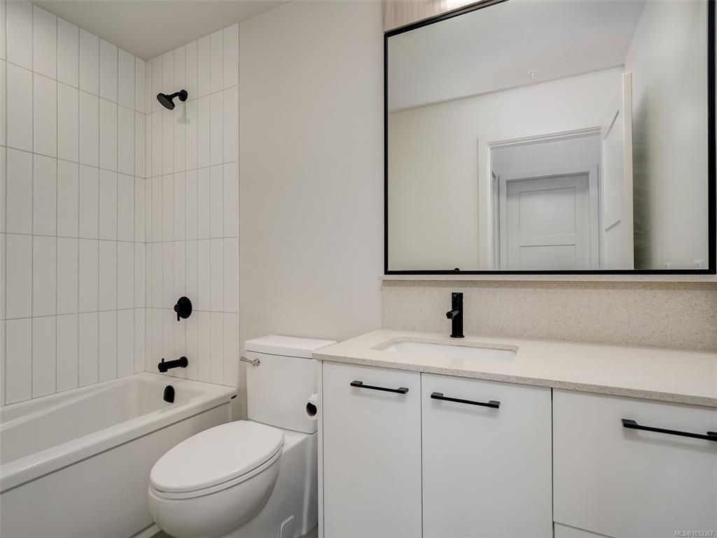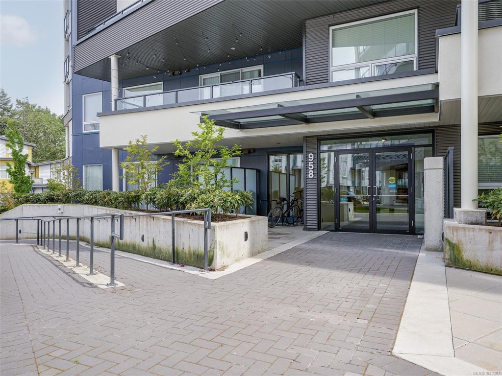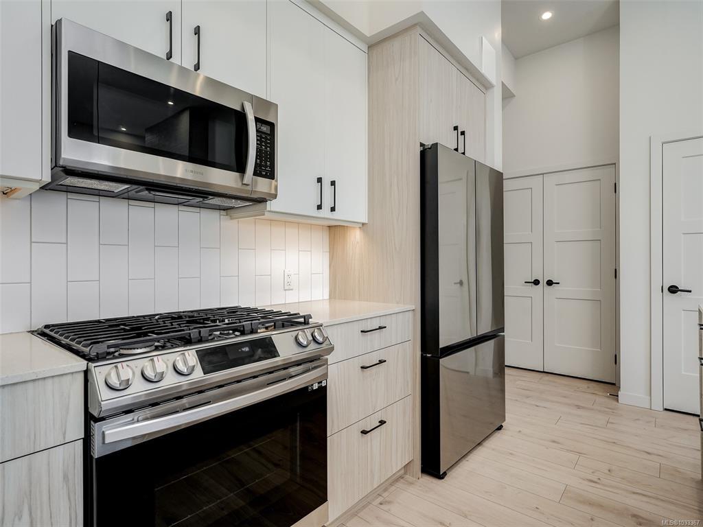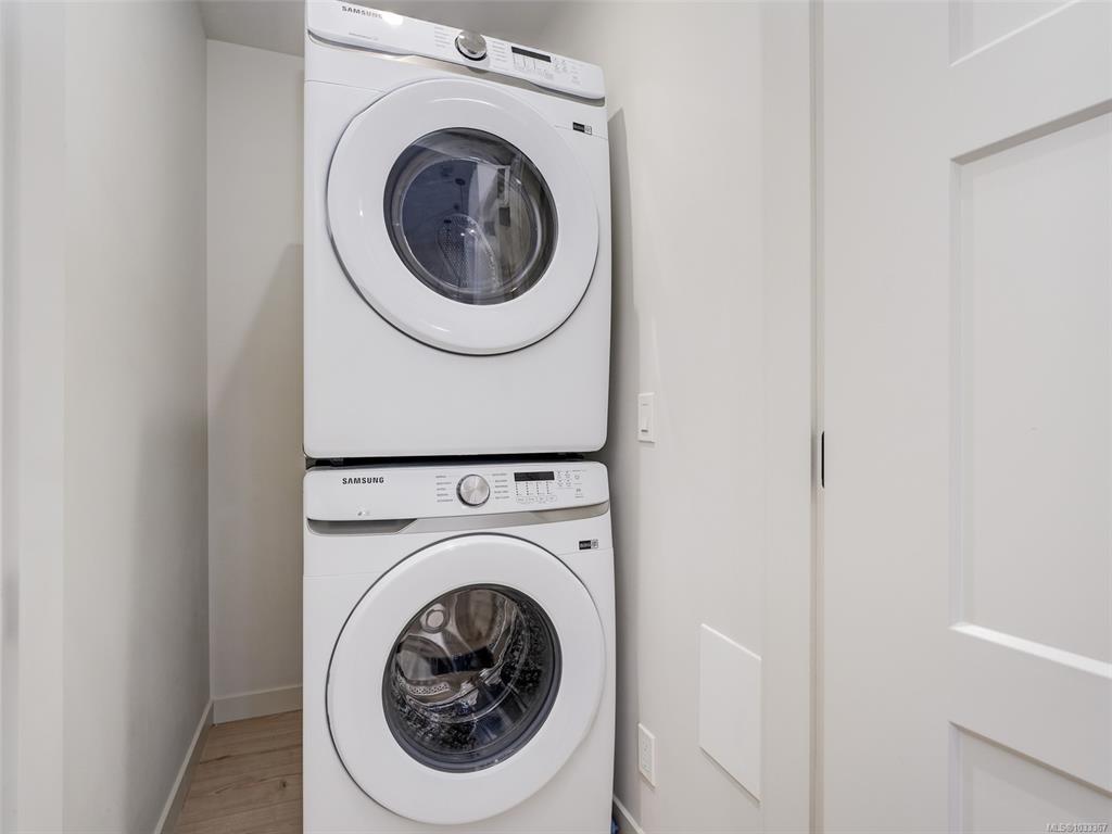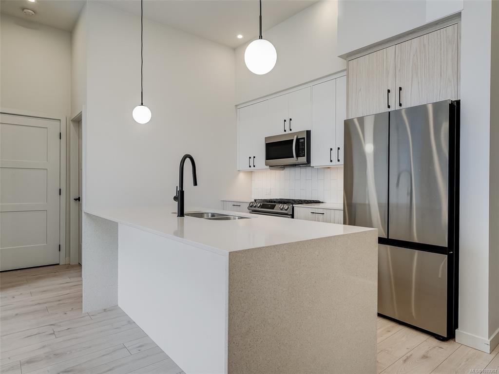 Welcome to this stunning top-floor condo offering modern comfort and stylish design with soaring 10’11” ceilings and bright open-concept living! This 2 bed, 2 bath home features ductless split heat pumps in bedrooms and living room, quartz countertops throughout, tiled backsplash, premium stainless appliance package with gas stove, and stacking laundry. Elegant tiled bathrooms and a modern linear fireplace add to the appeal. Enjoy the large balcony with gas BBQ hookup. Includes 2 parking stalls, storage locker, rooftop BBQ area, fitness room, bike storage, and an amenities/meeting room conveniently located just steps away next door. Conveniently located near Costco Wholesale, shopping, and schools!