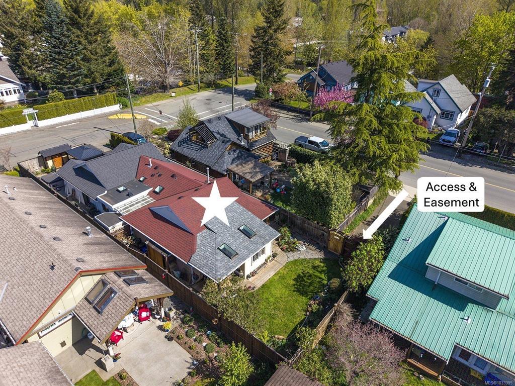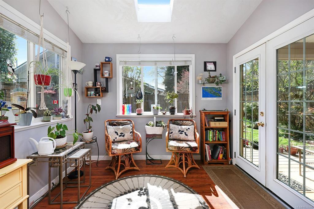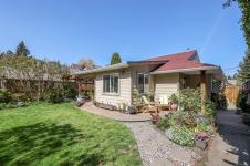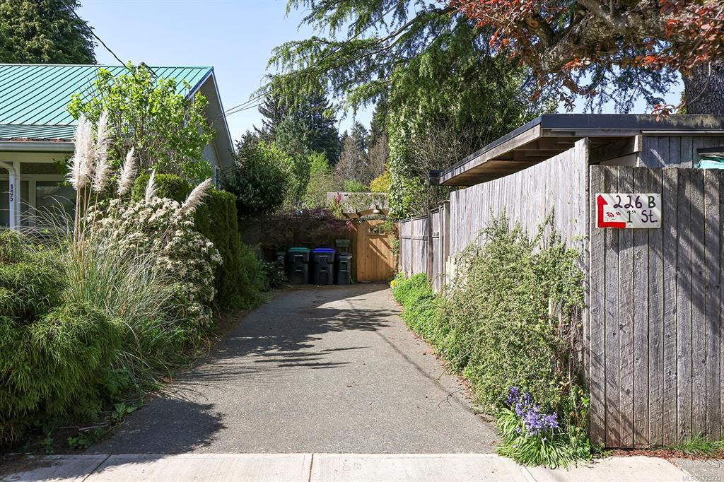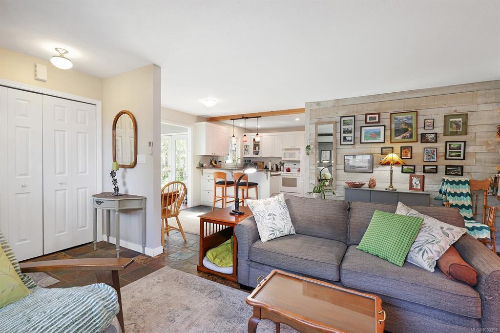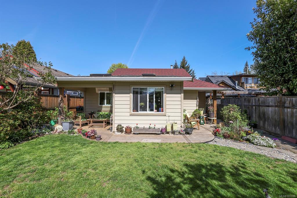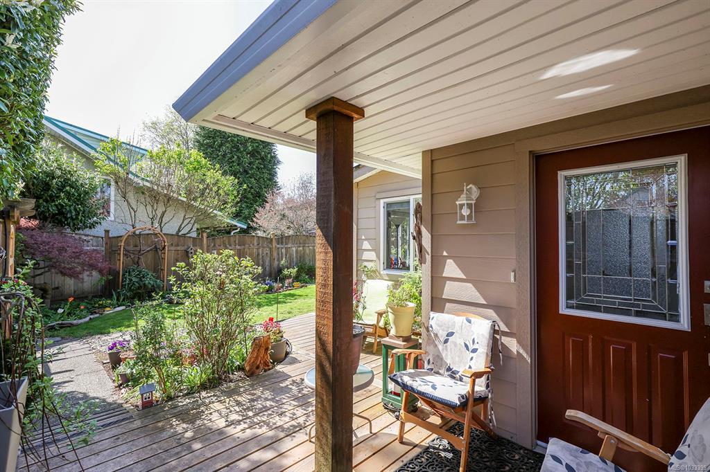 Old Orchard half duplex! Enchanting and simply adorable, streaming sunlight illuminates the sunroom w/ skylight and French doors to access the covered patio. Boasting 909 sf, 2 BD/ 1 BA, this home has been beautifully updated and renovated over the years, bright white modern kitchen w/ shaker cabinets and raised bar with seating, a large pantry closet with stacking washer/dryer. Slate tile flooring, Acacia hardwood flooring, West Coast inspired shiplap and exposed wood beam and open shelves create a comfortable space to entertain friends or enjoy the peaceful serenity of the tranquil gardens. Nestled in a private, fenced yard with access off Cliffe Ave, an easement on title allowing this owner direct access to this unit. Old Orchard, Courtenay’s heritage neighbourhood created in 1892, is a desirable location only 1-2 blocks from all the amenities - shopping, restaurants, pubs, and trails by the river. Split pump for A/C, murphy bed, new gutters, roof 7-8 yrs, Hardie 3 yrs.