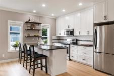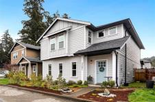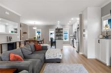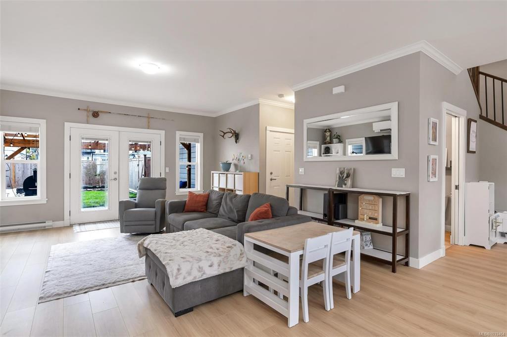 This charming 4 Bedroom + Den home in Happy Valley combines functionality and style that's perfect for families. Sitting on a beautifully landscaped front and rear yard complete with a custom-built pergola for outdoor entertaining, new exterior paint & new fence. A welcoming open-concept main floor with new laminate flooring, bright kitchen with freshly painted cabinetry, dining area, lots of windows, two pce bathroom plus office/den. Upstairs offers three bedrooms including the large primary with walk-in closet, 3 pce ensuite and a generous sized flex room which is currently used as a fourth bedroom & playroom. High efficiency ductless split heat pump for year round comfort plus new on-demand gas hot water. Private laneway access with attached oversized single car garage and driveway parking for two vehicles. Prime location, just steps away from the playground at Chidlow Park, the Galloping Goose trail and Happy Valley Elementary School.