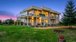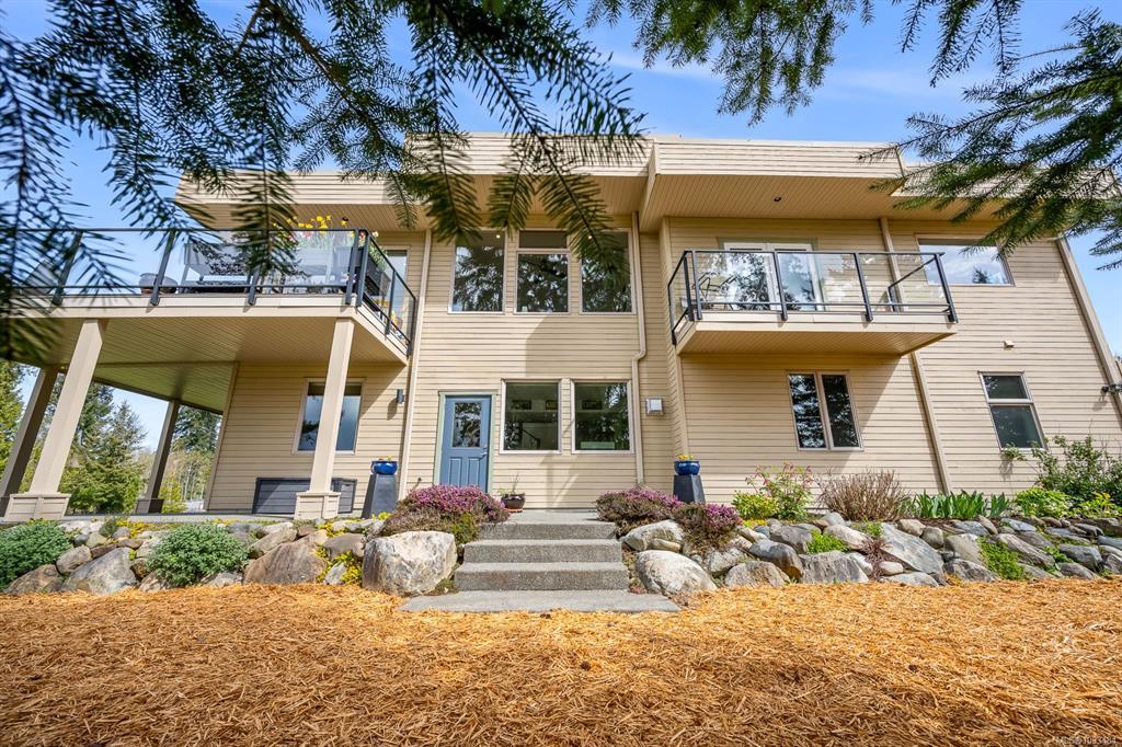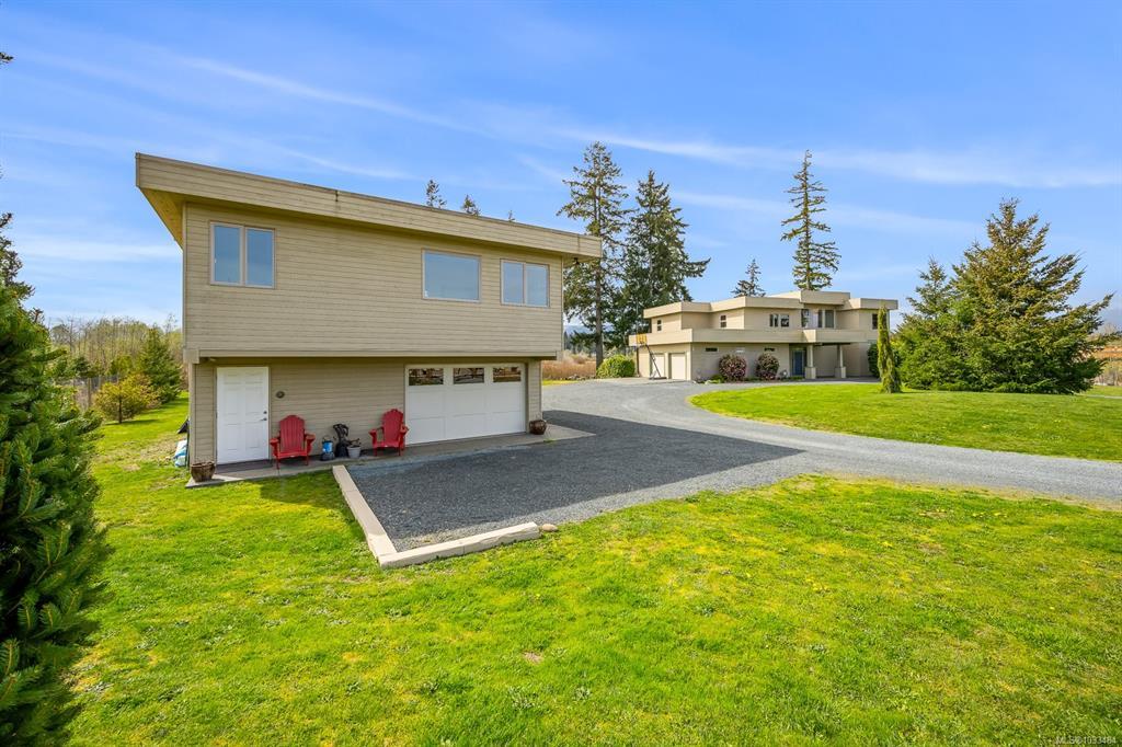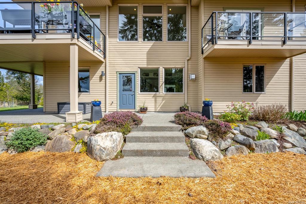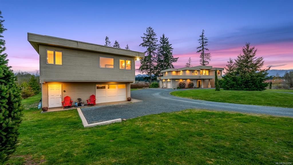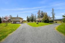 This beautiful sun soaked 5.6 acre property features both a main home & a carriage home perfect for generational living or potential rental income. A rare combination of self-sufficiency & modern upgrades but designed for comfort and efficiency in mind. The 3135 sqft, 5 bed/4 bath main home offers sweeping mountain views from the expansive windows, a fir staircase, engineered hardwood, & a custom kitchen with quartz counters & stainless appliances. The primary suite includes a WIC, 5-piece ensuite, & private deck, while the lower level adds a family room, 3 beds & 1.5 baths. The 875 sqft 2bed/1bath carriage house sits atop a double sized garage also with lovely mountain views. Extensive features include solar panels, heat pump HVAC, smart hot water, generator-ready power, dual wells, cistern, filtration, & dual septic. Outdoors offers a powered gate, RV hookup, gardens, fruit trees, & a garden. Minutes to town and all amenities. Approx. 3 acres of the property is protected wetlands.