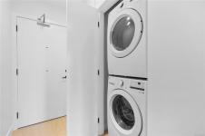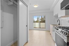 This bright north facing suite maximizes natural light and features a gas range stove, sleek modern finishes, and efficient design perfect for first time buyers, students, or investors. Included are a secured parking space and storage locker for added convenience.