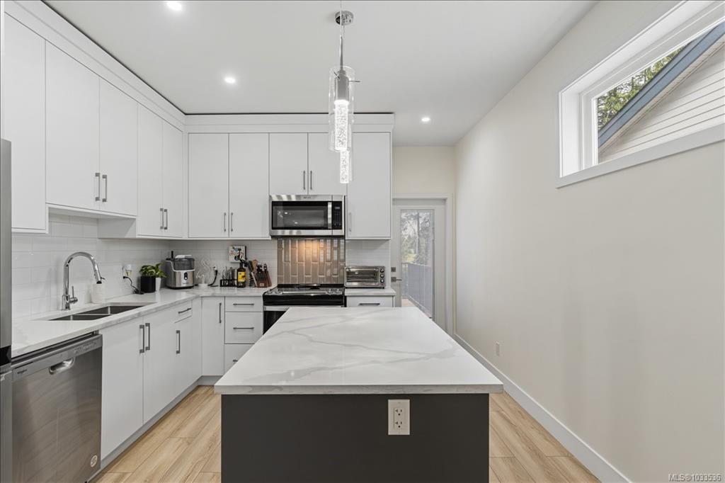 Set on a quiet street of newer homes in Nanaimo’s vibrant south end, this exceptional 2023-built residence delivers the perfect blend of modern design, quality construction, and everyday functionality. Offering 5 bedrooms and 3 bathrooms, including a beautifully finished 2-bedroom legal suite, it’s an ideal opportunity for family living with strong income potential. The thoughtfully designed floor plan showcases upscale finishes throughout, highlighted by stone countertops, high-end laminate flooring, and a bright, contemporary aesthetic. The main home features efficient forced air natural gas heating, on-demand hot water, and a heat pump rough-in for future comfort, while the suite is fully self-contained with separate meter and electric baseboard heat. Step out to a generous deck overlooking the private backyard, ready for your vision. Walking distance to an elementary school and close to all amenities, all in a peaceful, family-friendly neighbourhood.
