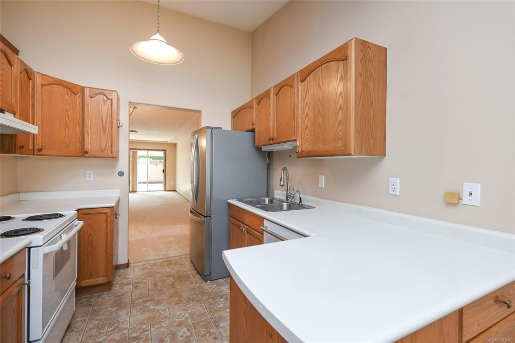 Neat & tidy one level 2 bed/2 bath patio home in fantastic Courtenay location - walking distance to all amenities! This spacious 1295sqft abode is ideal for those wanting to downsize or retirees. Efficient kitchen has ample cabinetry & vaulted ceiling with skylight in sunny eating nook. Spend afternoons on the large, private, partially covered deck. The primary bedroom is complete with walk-in closet plus one regular closet, 3pce ensuite & French door access to the deck. Other features include crawlspace and single car garage. Well run strata allows for 1 dog or cat up to 25lbs. This 55+ development has an exceptional location with a super walk-score where you can stroll to downtown shops & restaurants or enjoy the natural setting of the Puntledge River right next door.